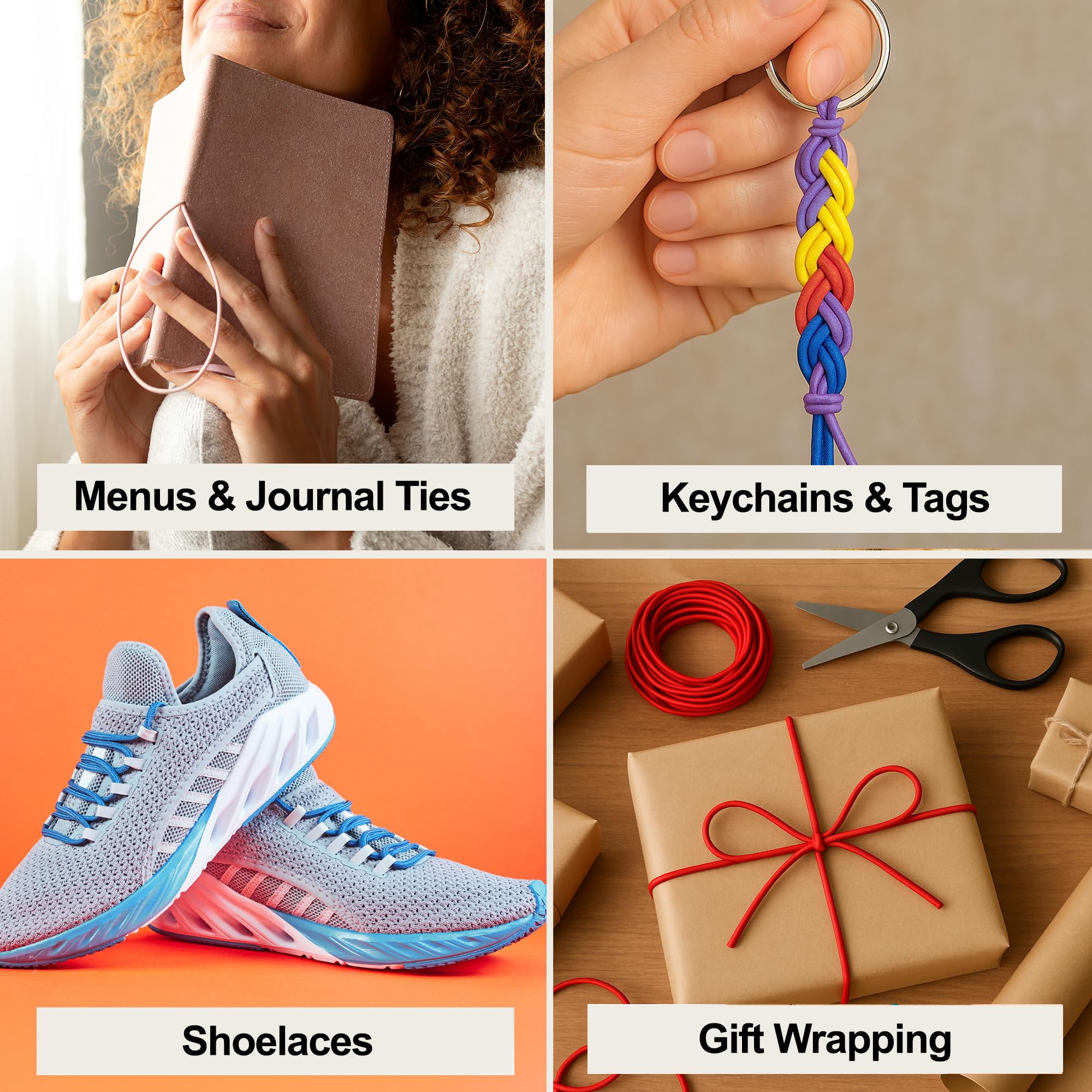Elastic bead strings can lose stretch or break over time. This soft elastic cord provides a dependable option for jewelry making and craft projects. Softer and more flexible than elastic bungee cords, the colorful elastic craft cord is used like elastic rubber cord and is designed to resist unraveling or becoming brittle with regular use. The resilient elastic round cord can stretch up to about double its original length. The wear- and abrasion-resistant fabric jacket on the elastic stretch cord is designed to retain its shape and color during regular use. The strong rope elastic is intended for repeated use without fraying. With a generous packing quantity included, the spool of skinny elastic cord supports multiple projects. Ideal for adult jewelry makers and hobbyists, the elastic jewelry cord works well for a wide range of designs. The elastic cord can also be used to create traveler notebooks, paper and textile leather planners, or booklets. The stretchy cording is suitable for sewing, weaving, lacing, and crocheting applications. The stretch elastic cord works well for button loops, bed sheets, laundry lines, corsets, lingerie, skirts, dresses, or pouch closures. The rope elastic cord is also useful for wrapping gifts, tying cabinet doors and plants, hanging pictures and ornaments, repairing seat covers, and securing glasses, lids, or lens caps. The stretchy thread is absolutely a necessity for decorative and craft use.