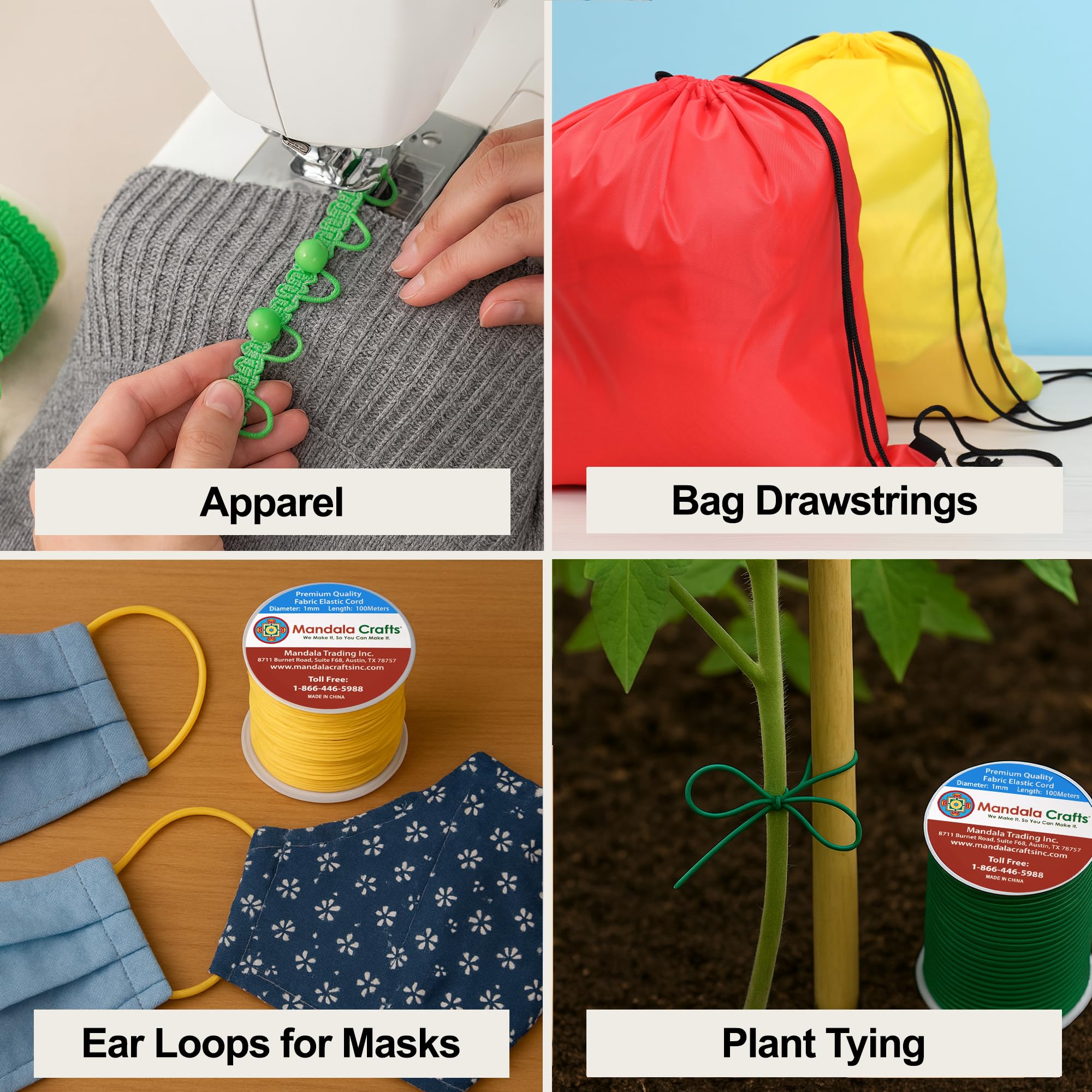 Bulk Stretchy Fabric Elastic Cord 2mm Stretch Strings Spool: The continuous 76-yard solid round cord elastic with heat treatable ends offers 100% elongation. Easy to cut, tie, or knot, the colored elastics cord for indoor & outdoor maintains long-lasting elasticity.