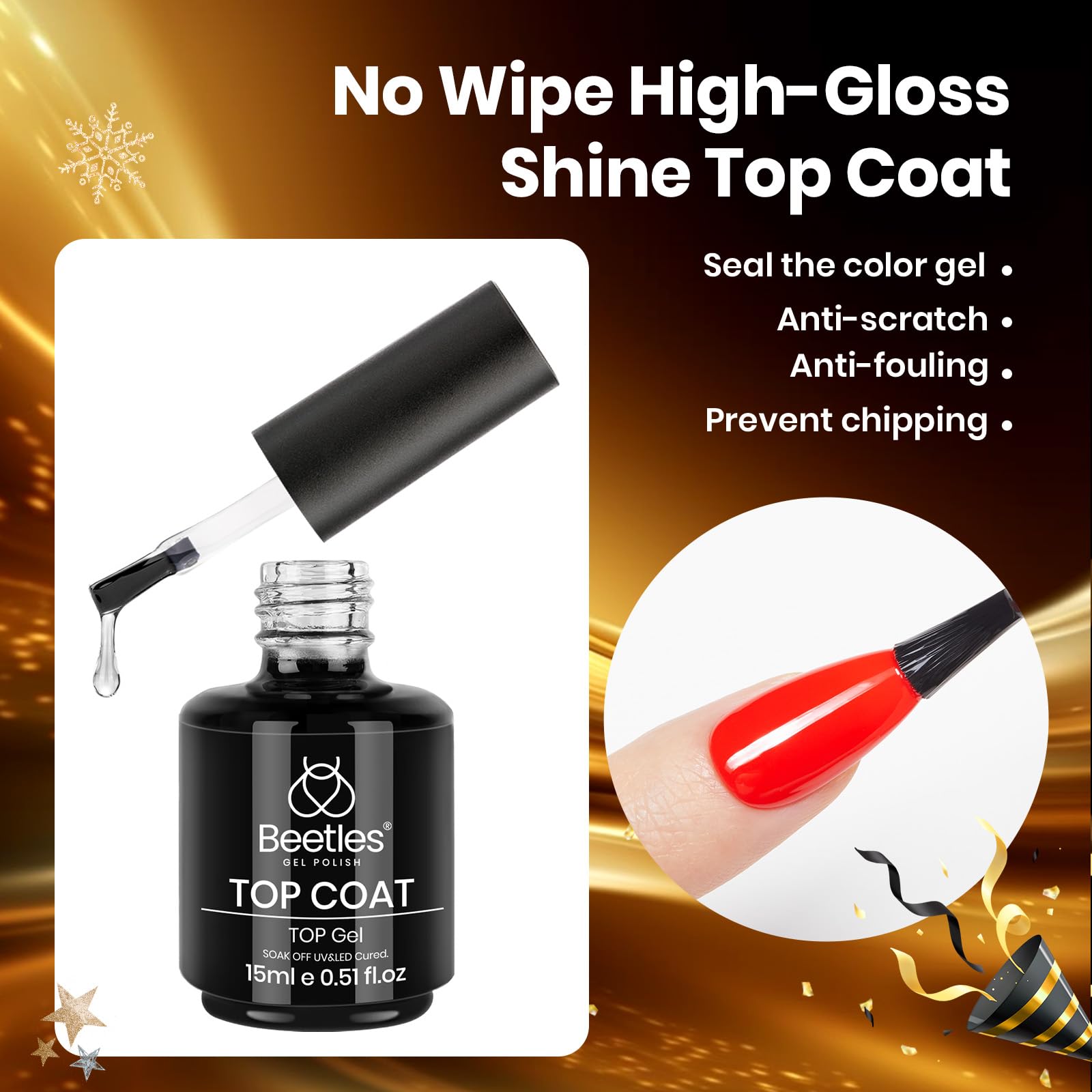 Beetles Clear Color Gel: No Wipe Top Coat Gel Nail Polish, Long lasting with perfect shine. A flexible top coat avoids nicks, chips, or smudges. UV/LED Lamp needed. Christmas Nail Arts.