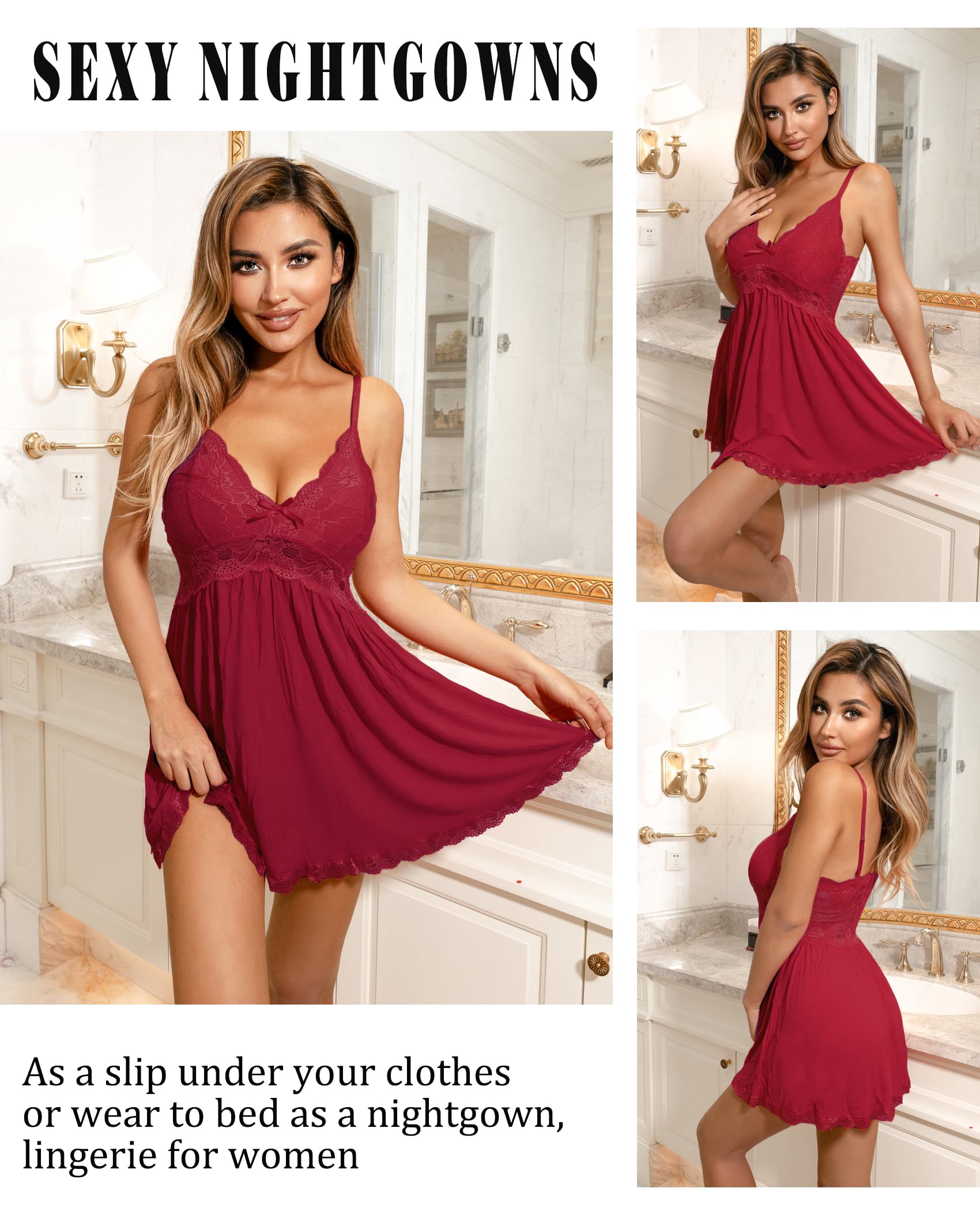 Babydoll nightgown, nighty for women sexy made of 50% Polyester and 50% Acrylic, super soft comfortable modal sleepwear with decent floral lace detail, no worries scratch the skin you will fall in love with the smooth feeling