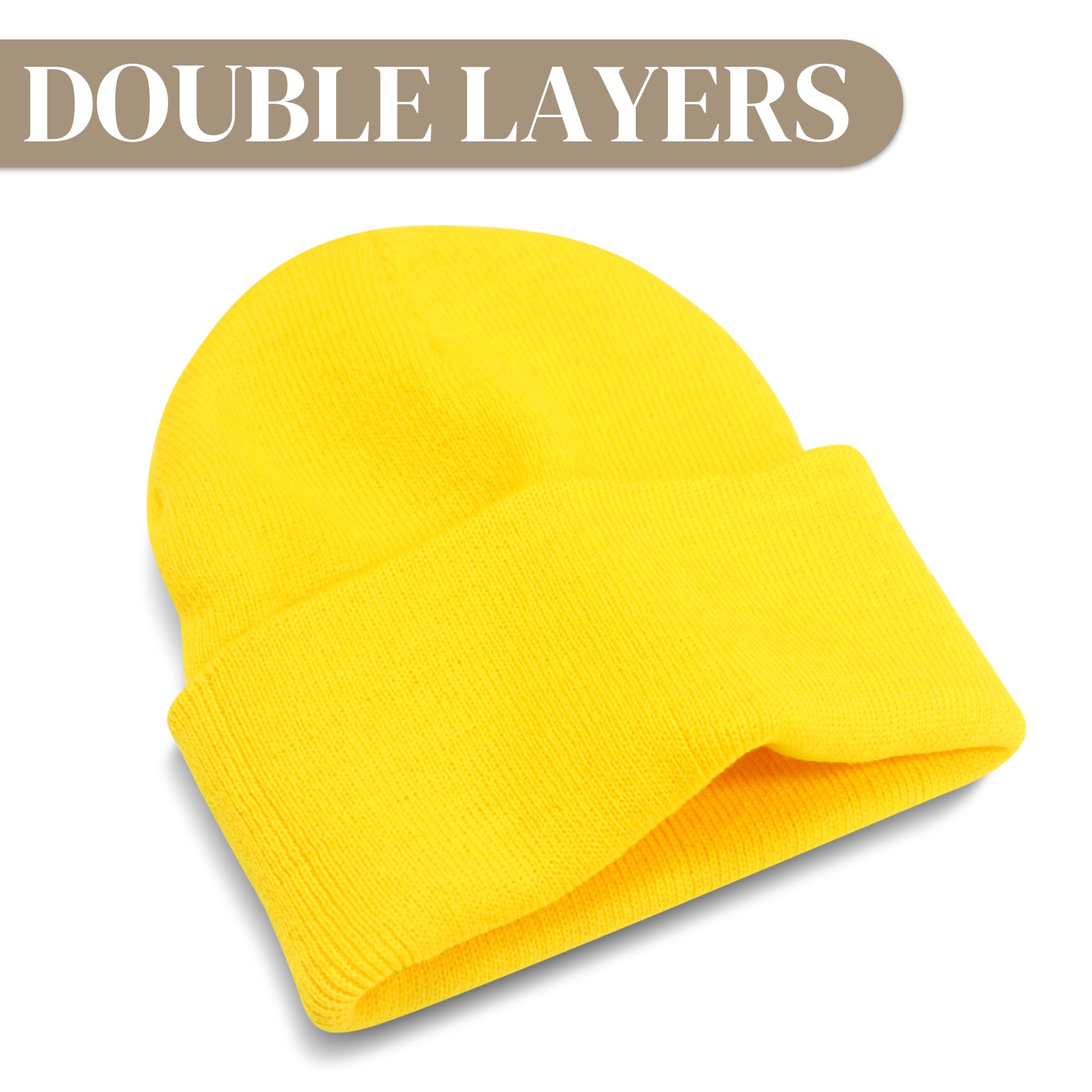 KEEP WARM: Double layers knitted beanie will keep your head warm all winter long. You can pull the cuff of this beanies hat down to cover your ears for added warmth