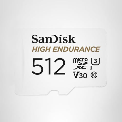 SanDisk 512GB High Endurance Video microSDXC Card with Adapter for Dash Cam and Home Monitoring Systems - C10, U3, V30, 4K UHD, Micro SD Card - SDSQQNR-512G-GN6IA