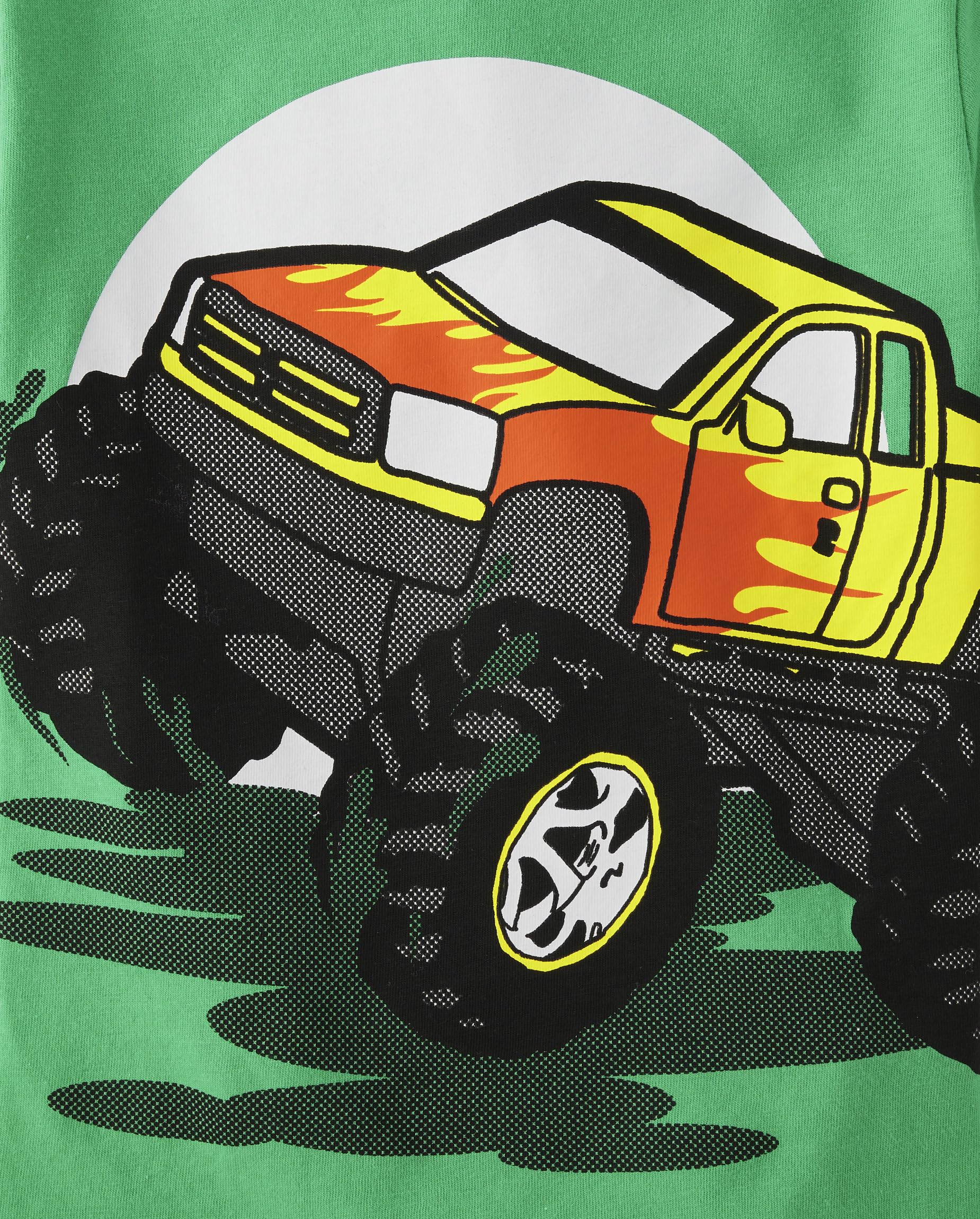 MULTIPACK — 3-pack of graphic tees: 1 style with construction vehicle graphic design at front; 1 style with monster truck graphic design at front; 1 style with racecars graphic design at front