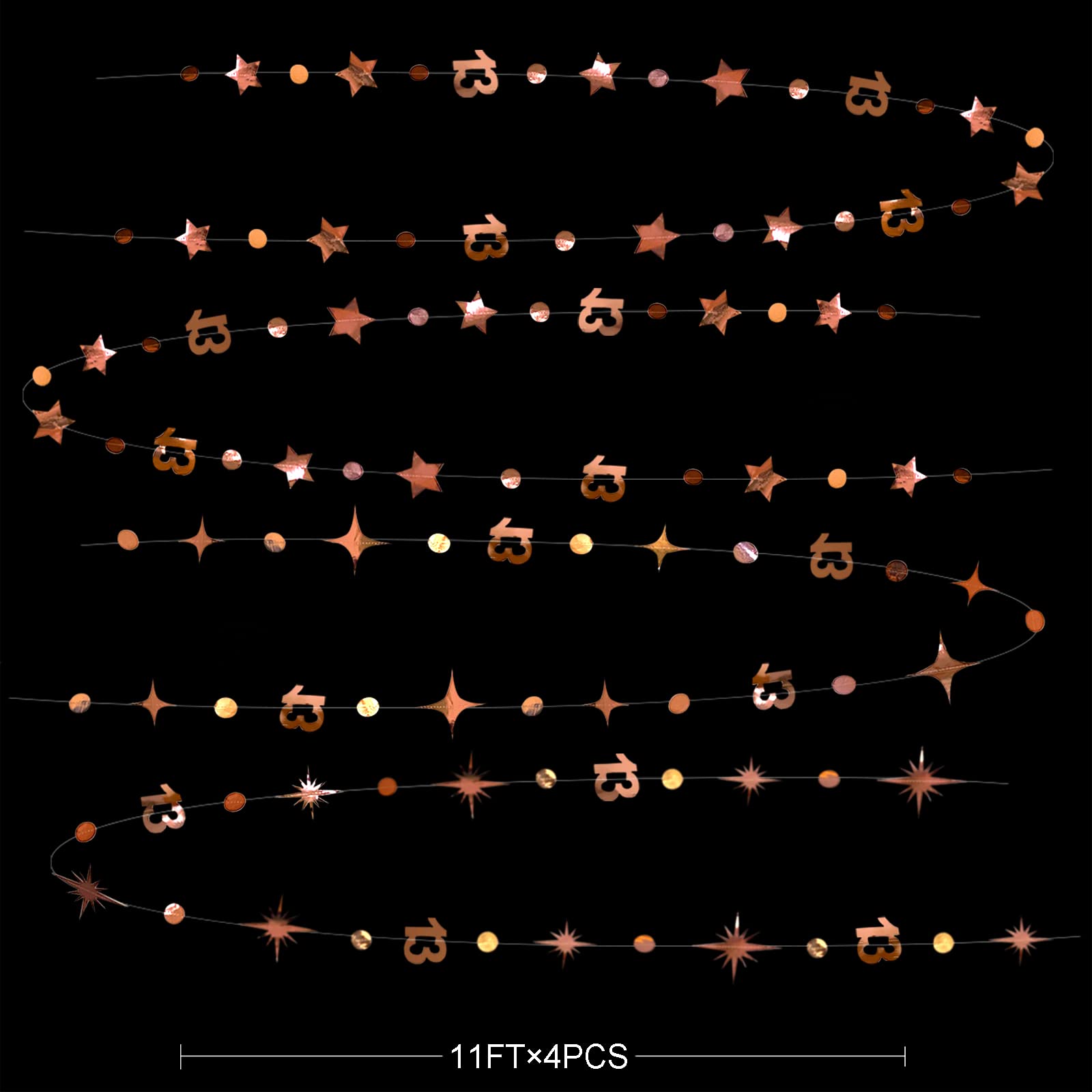 👍 Package includes - 4 strings of 11.5 feet/3.5 meters rose gold number 13 sparkling twinkle star and circle dots garlands , totally is 46 feet/14 meters