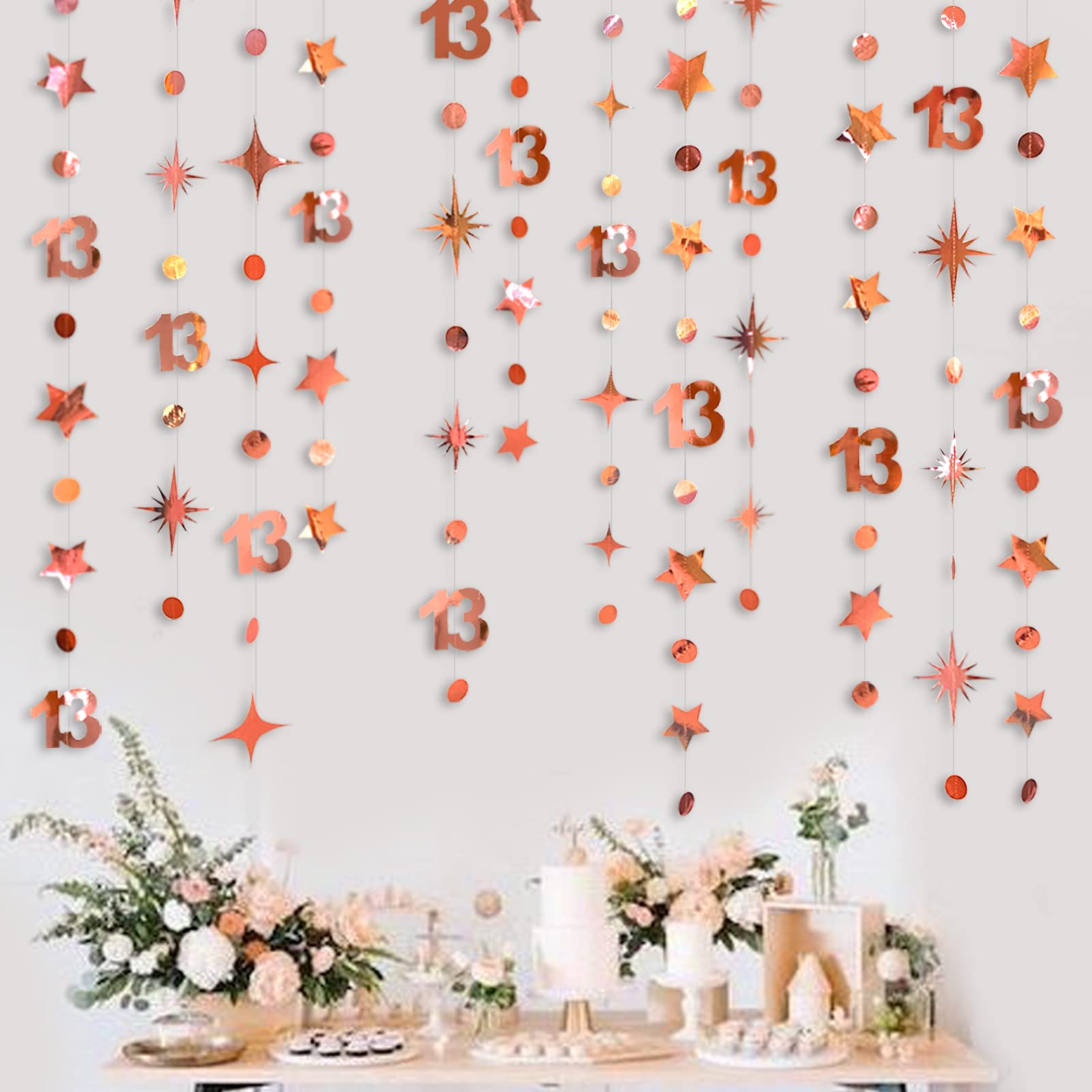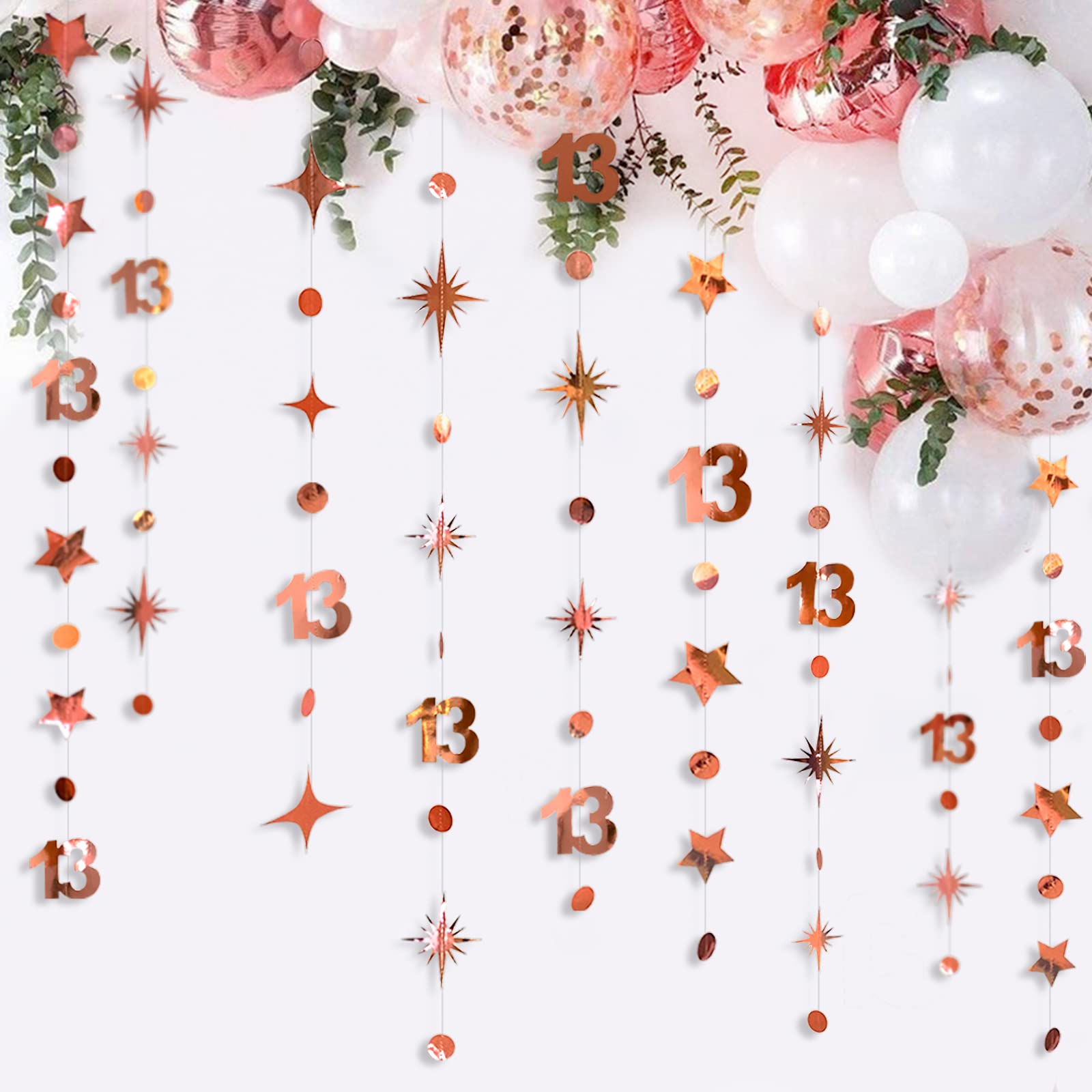 👍 Adorable party décor- our rose gold number 13 circle dot twinkle star garland kit is perfct for girls/boys 13th birthday party, 13 year old birthday decorations, 13 birthday decorations for girls, 13 birthday decorations for girls, 13th anniversary, official teenager birthday decorations,wedding, bridal shower, birthday, Christmas, barbecue, home, engagement, christenings, fetes, etc