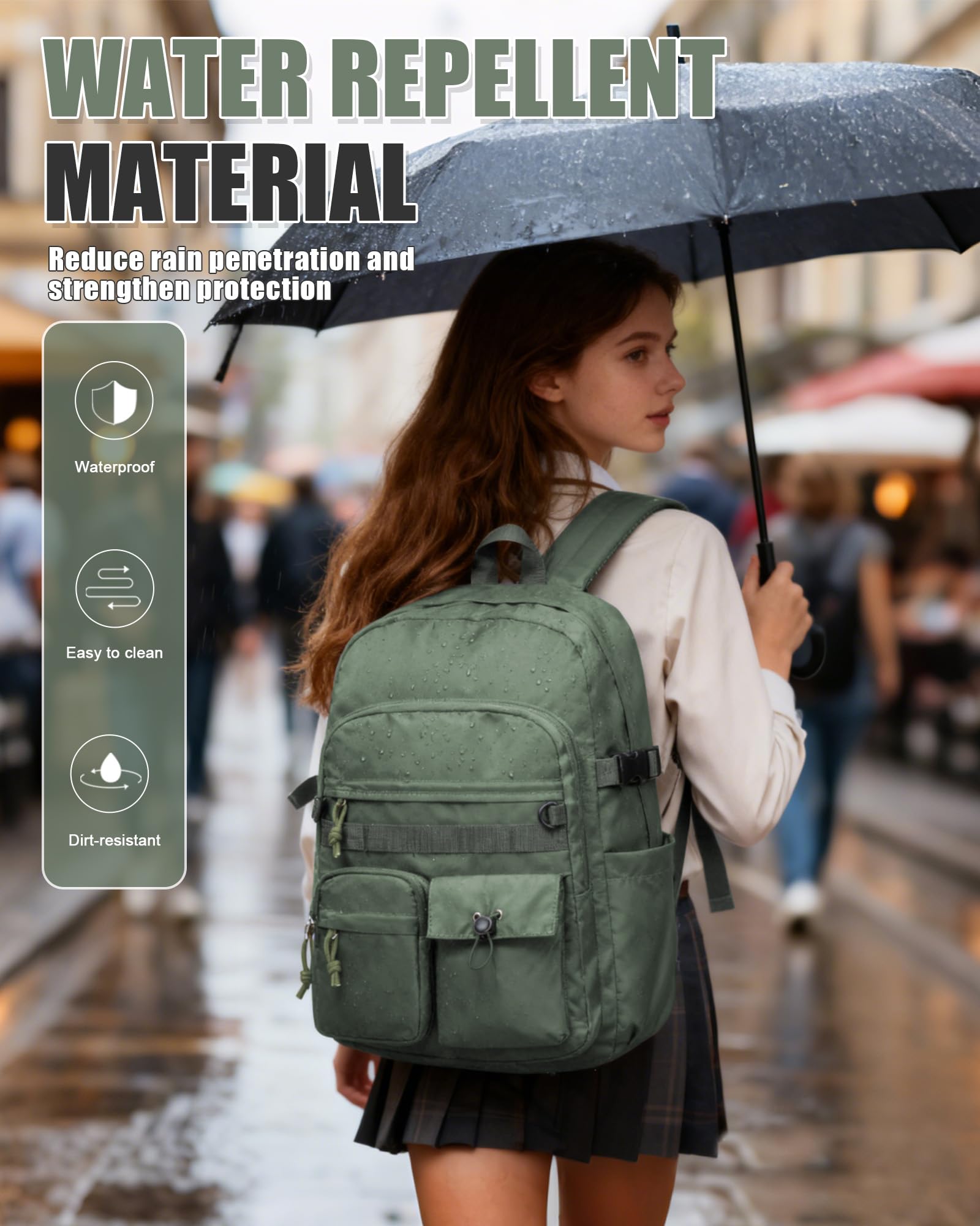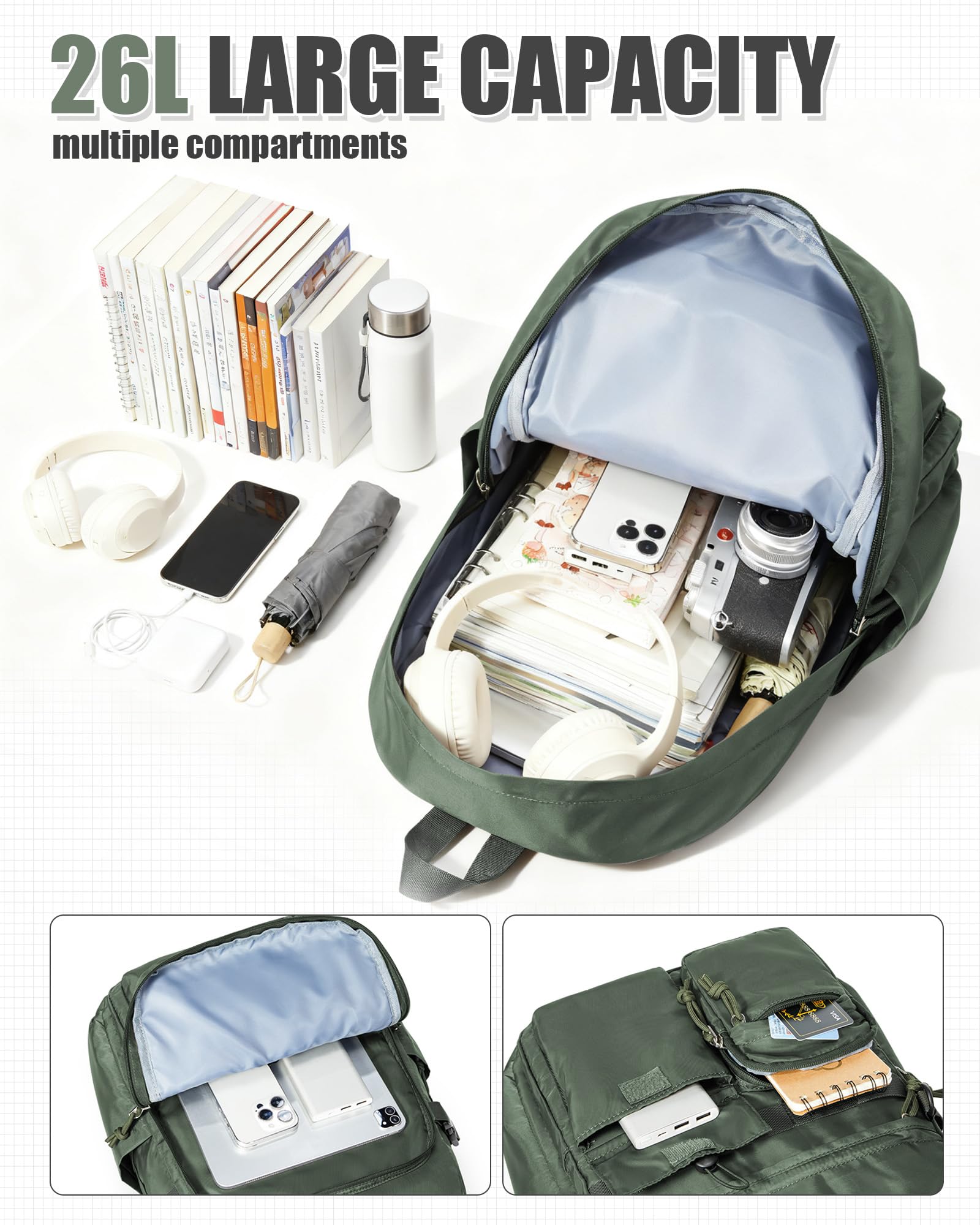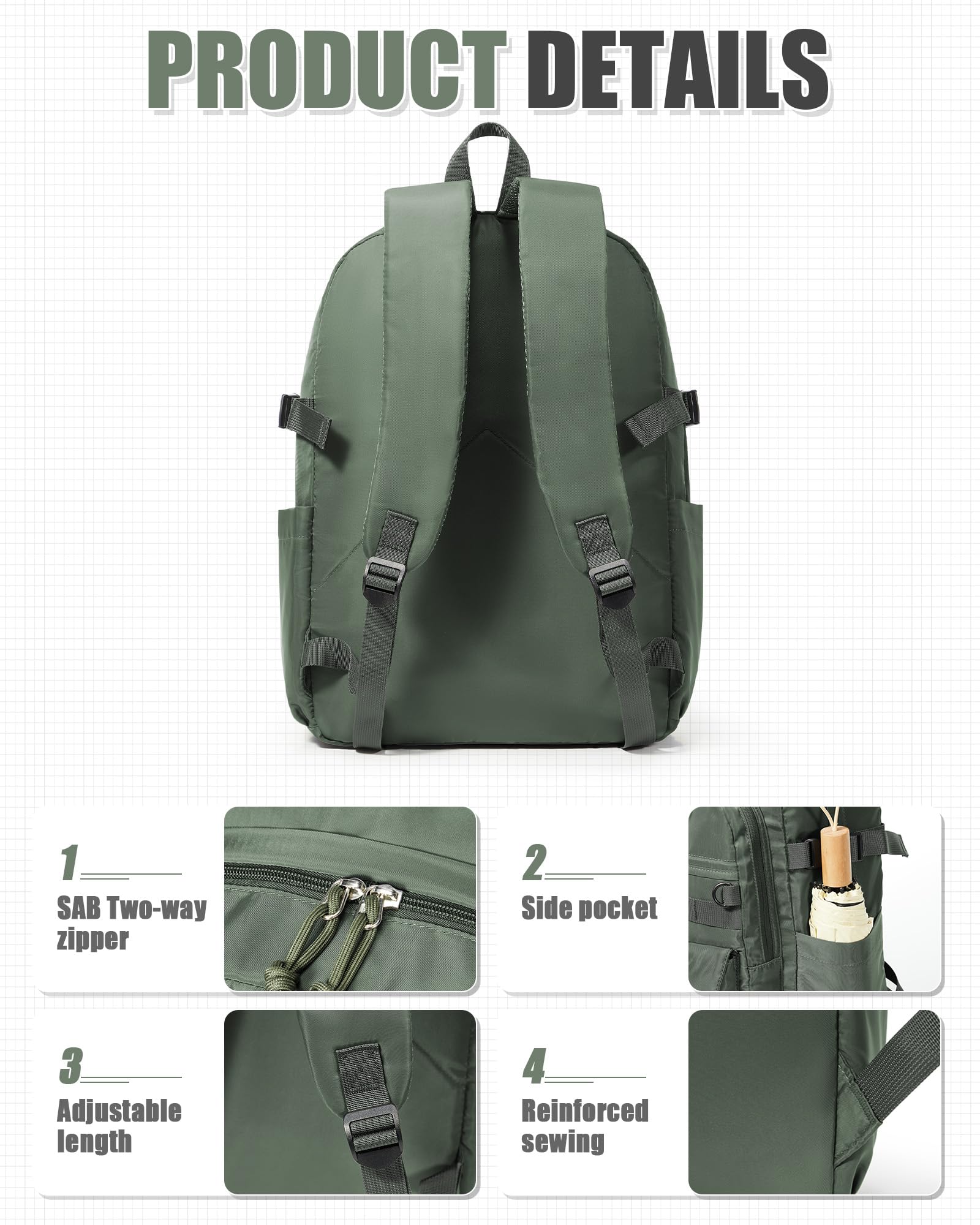 【Large Capacity】This multi-pocket backpack has a large main pocket that can accommodate a 15.6-inch laptop, and the central pocket can accommodate a lower tablet and books, which can be well protected. There is a support at the bottom, and the two side pockets can hold water bottles, drinks or umbrellas. The small zipper pocket on the front can be used for small items for daily use, and the items inside are easy to carry and take out.