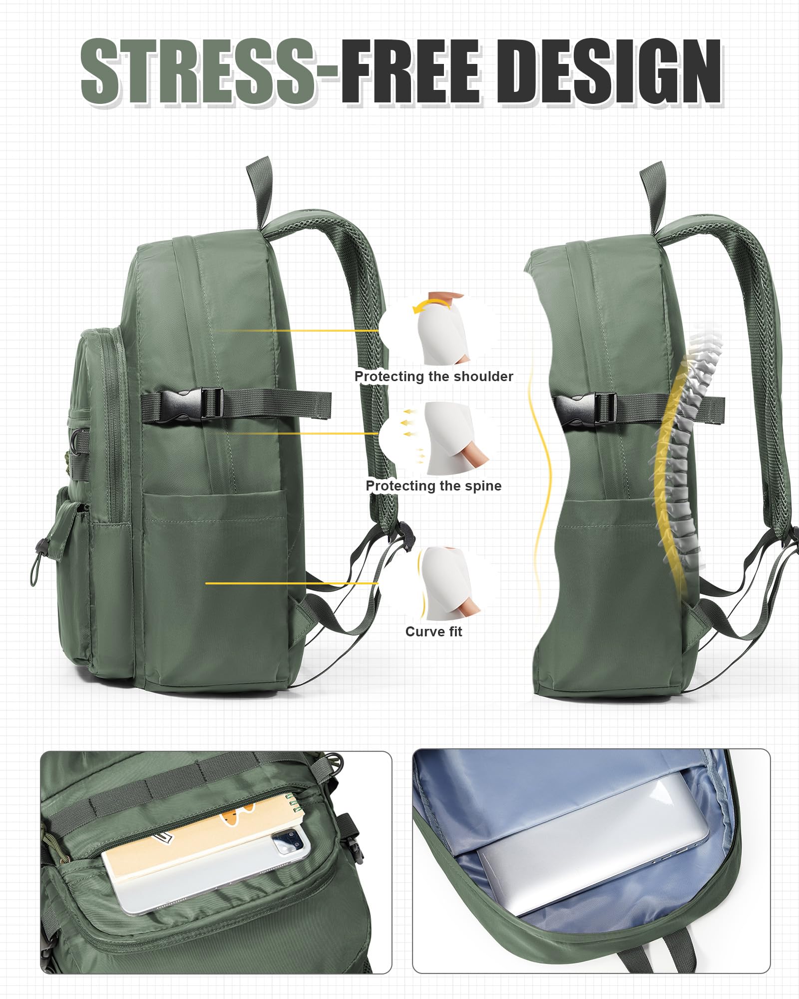 【Humanized structural design】The shoulder straps and back of this Casual Daypacks have comfortable padded support, which protects our shoulders and back and relieves pressure when carrying heavy objects. In addition, the computer compartment also has padded support to prevent damage to the equipment.