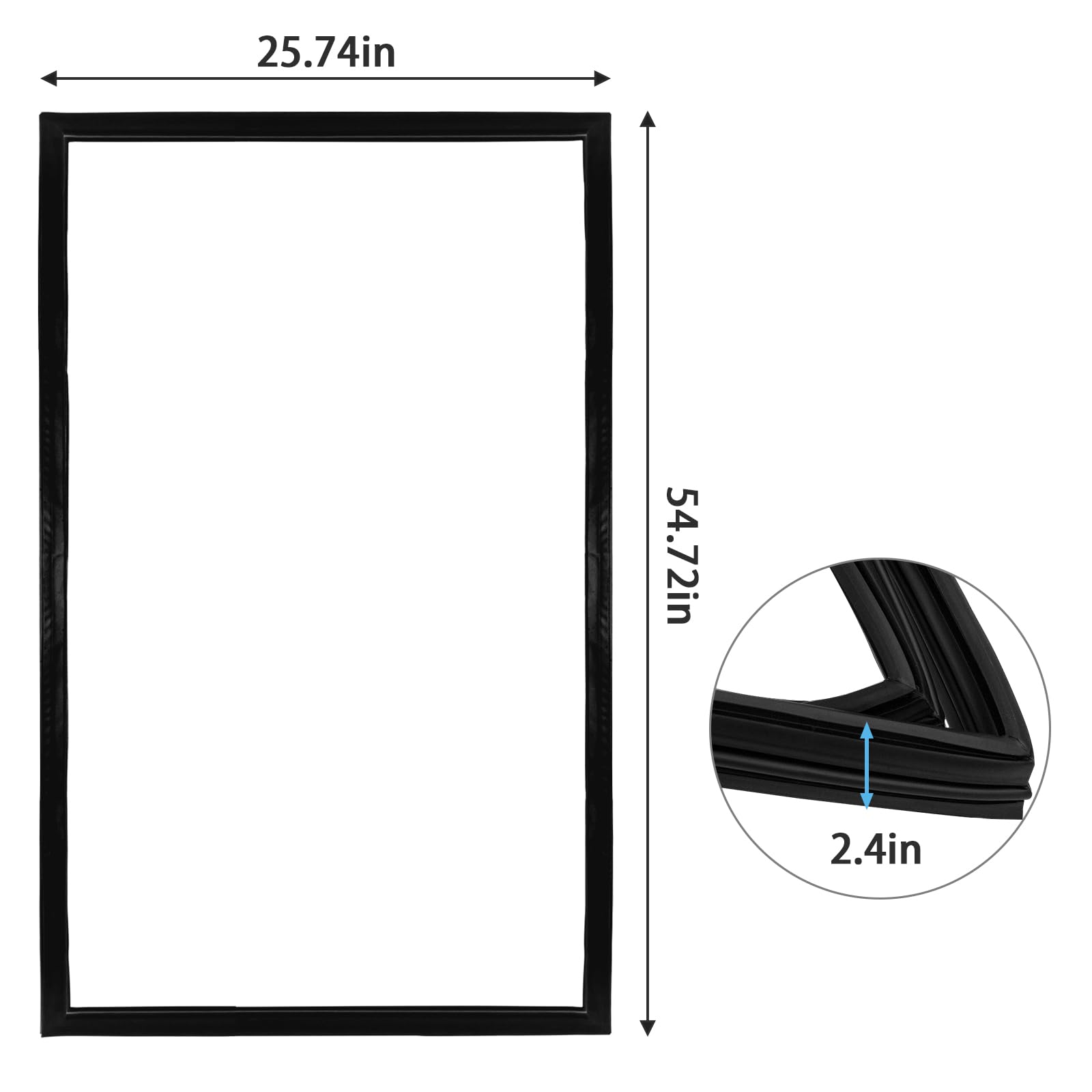 Product size: The Seal door gasket size is 25-3/4" x 54-1/8"