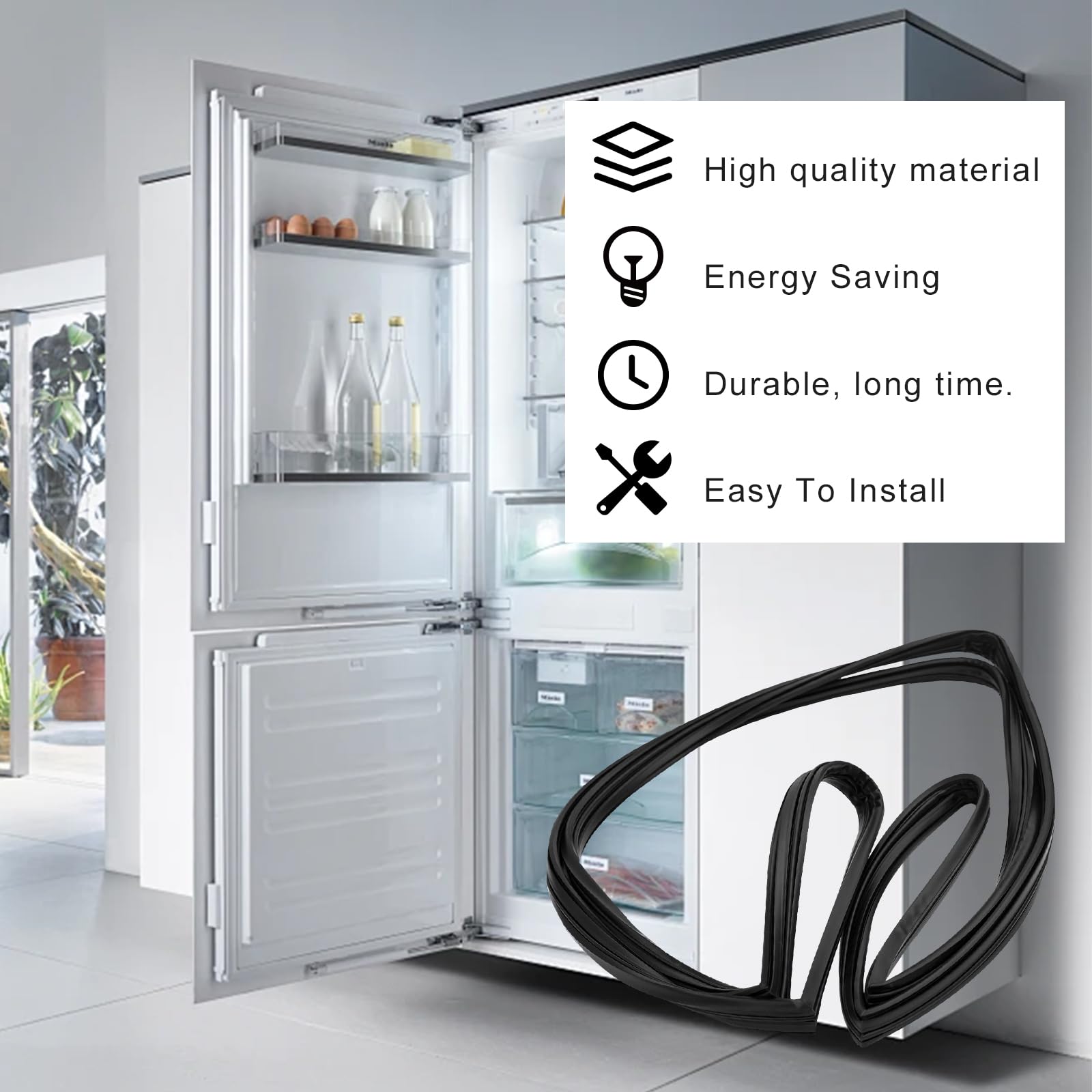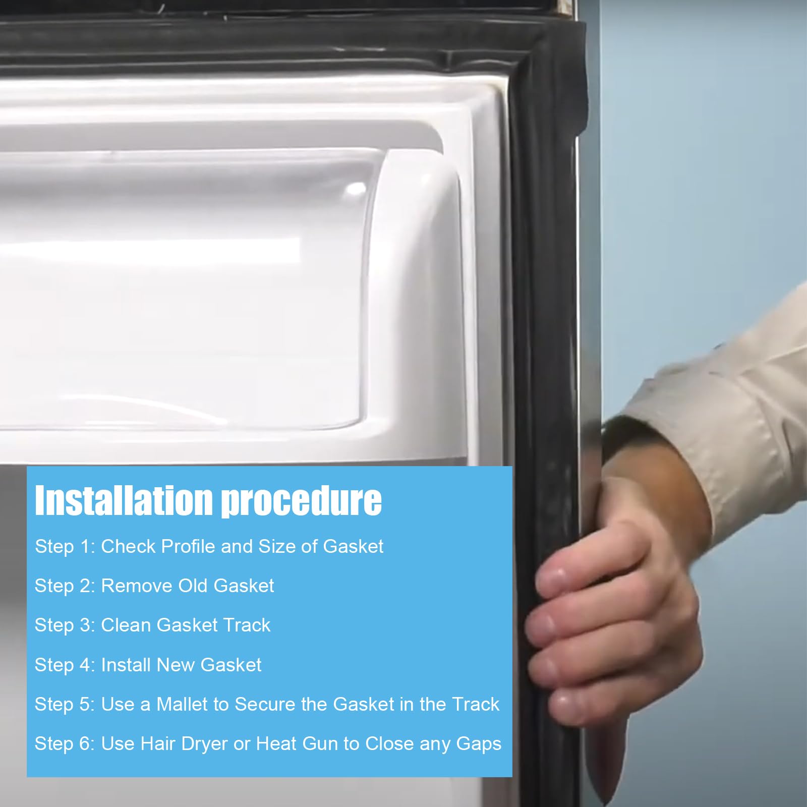 Easy installation: No need to use any tools, just remove the old seal door gasket and install a new one. Note: 1.Power off during replacement. 2.During installation, first fix the four corners, and then press in the middle to ensure that the sealing strip is installed 3.If they are too stiff and difficult to install, by soaking them in hot water for a while, they can easily return to their original state.