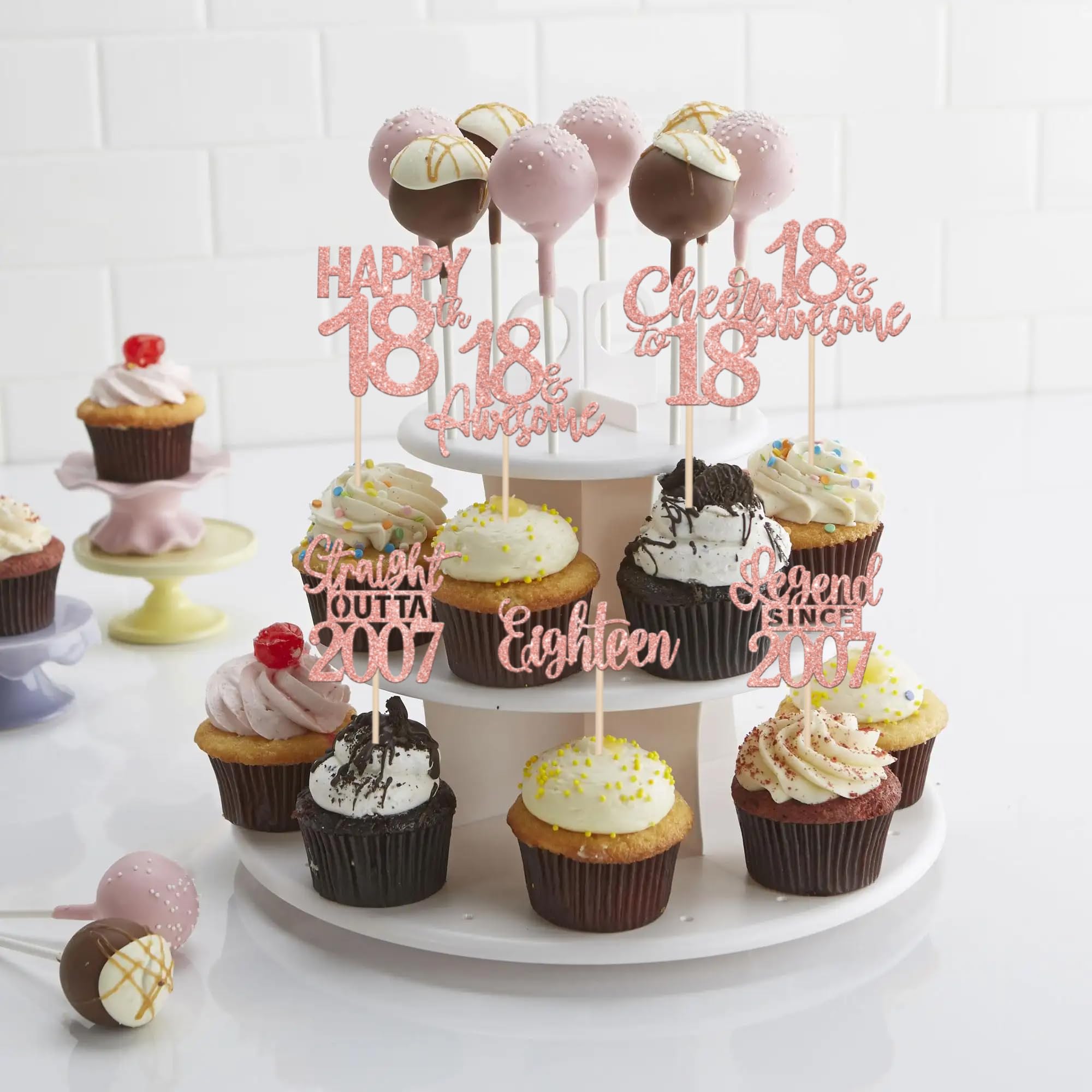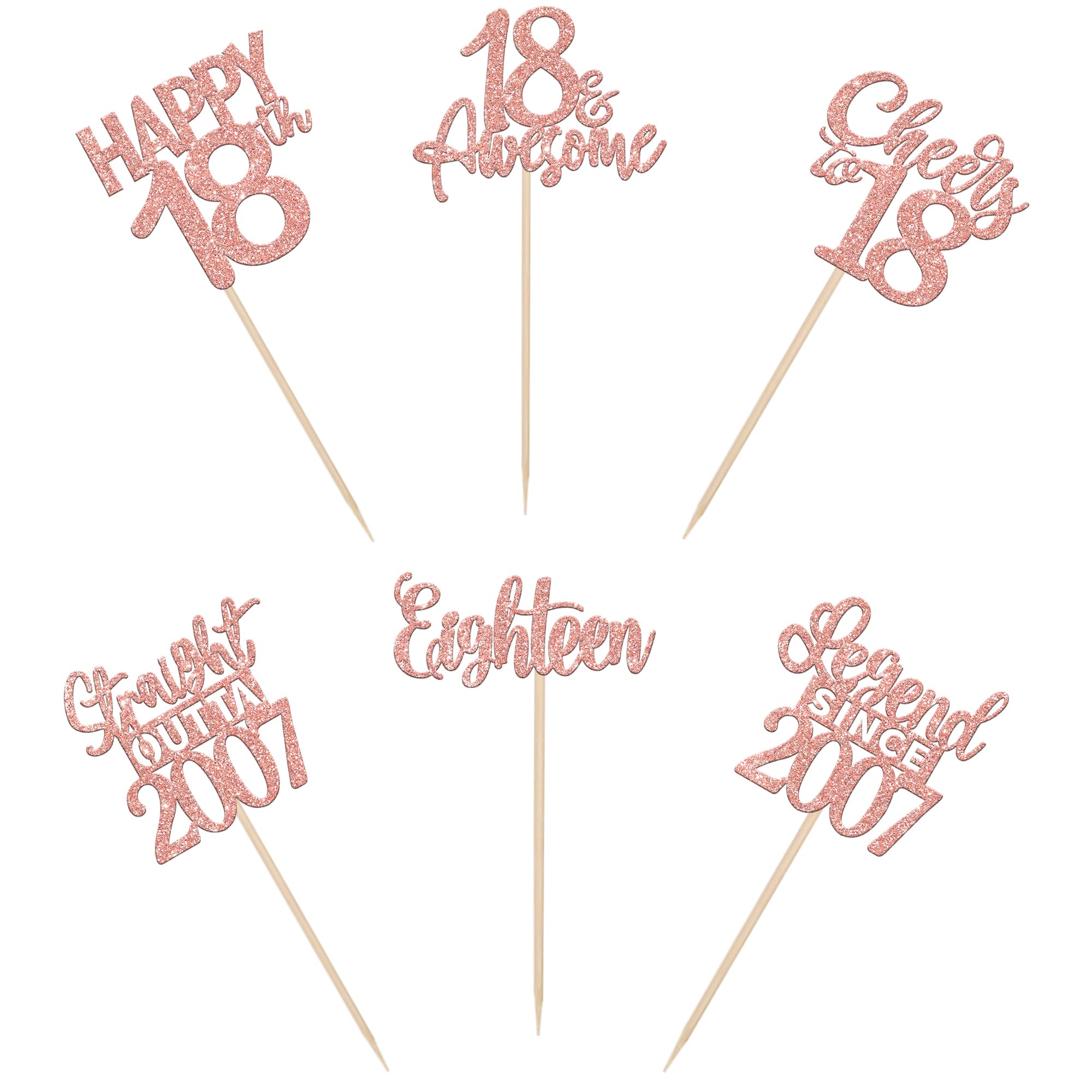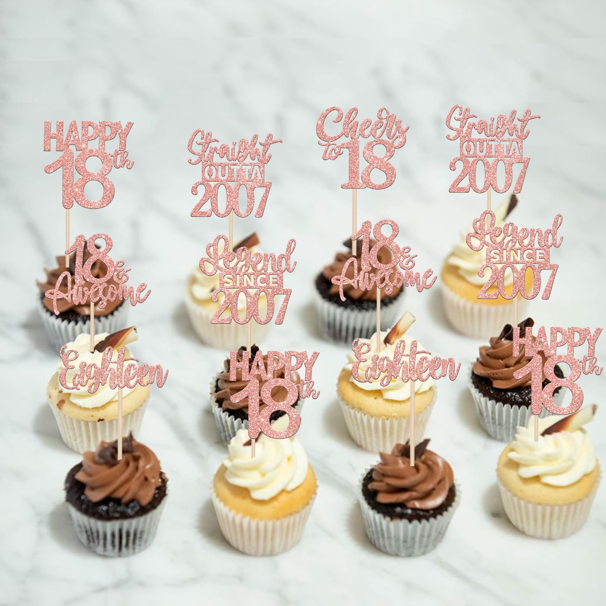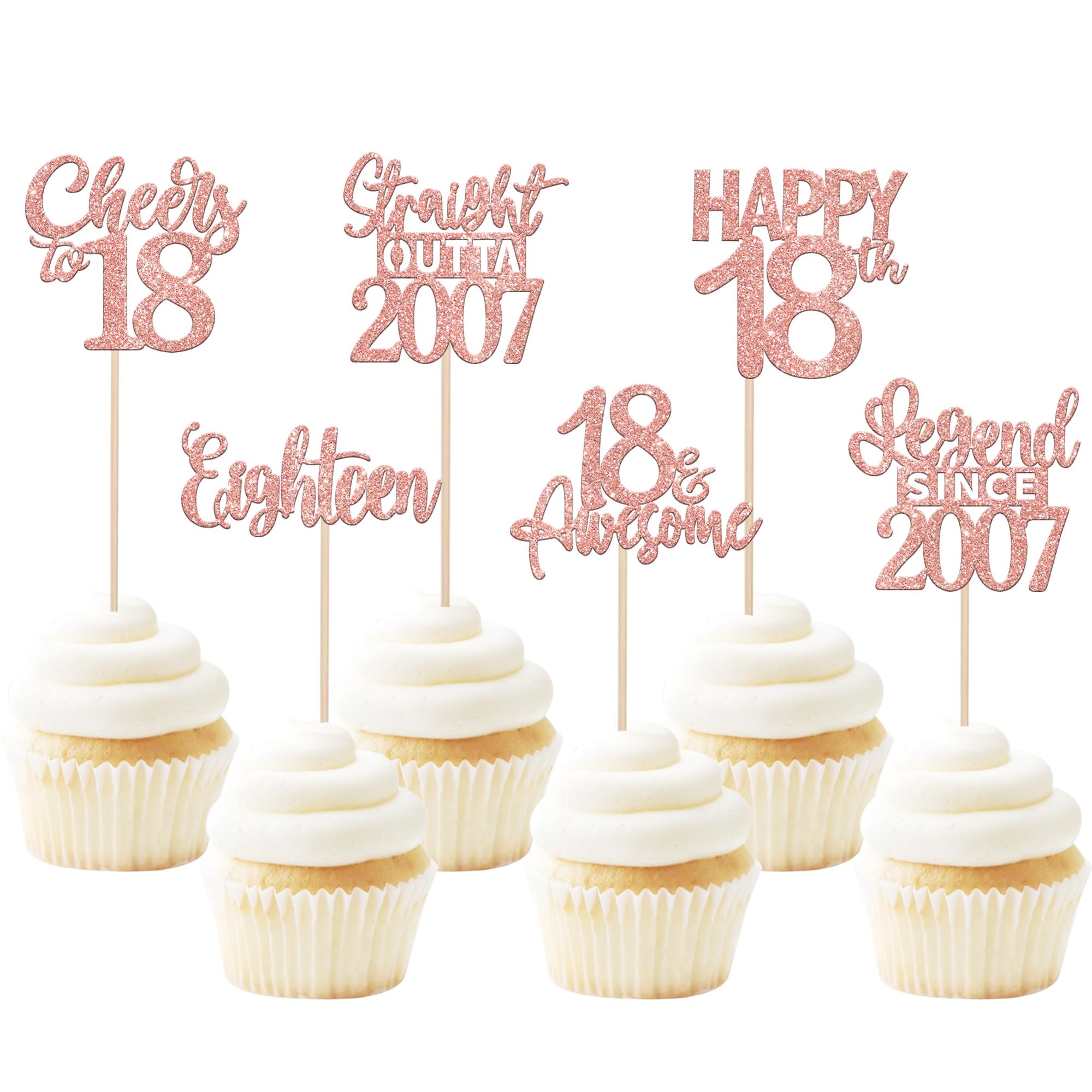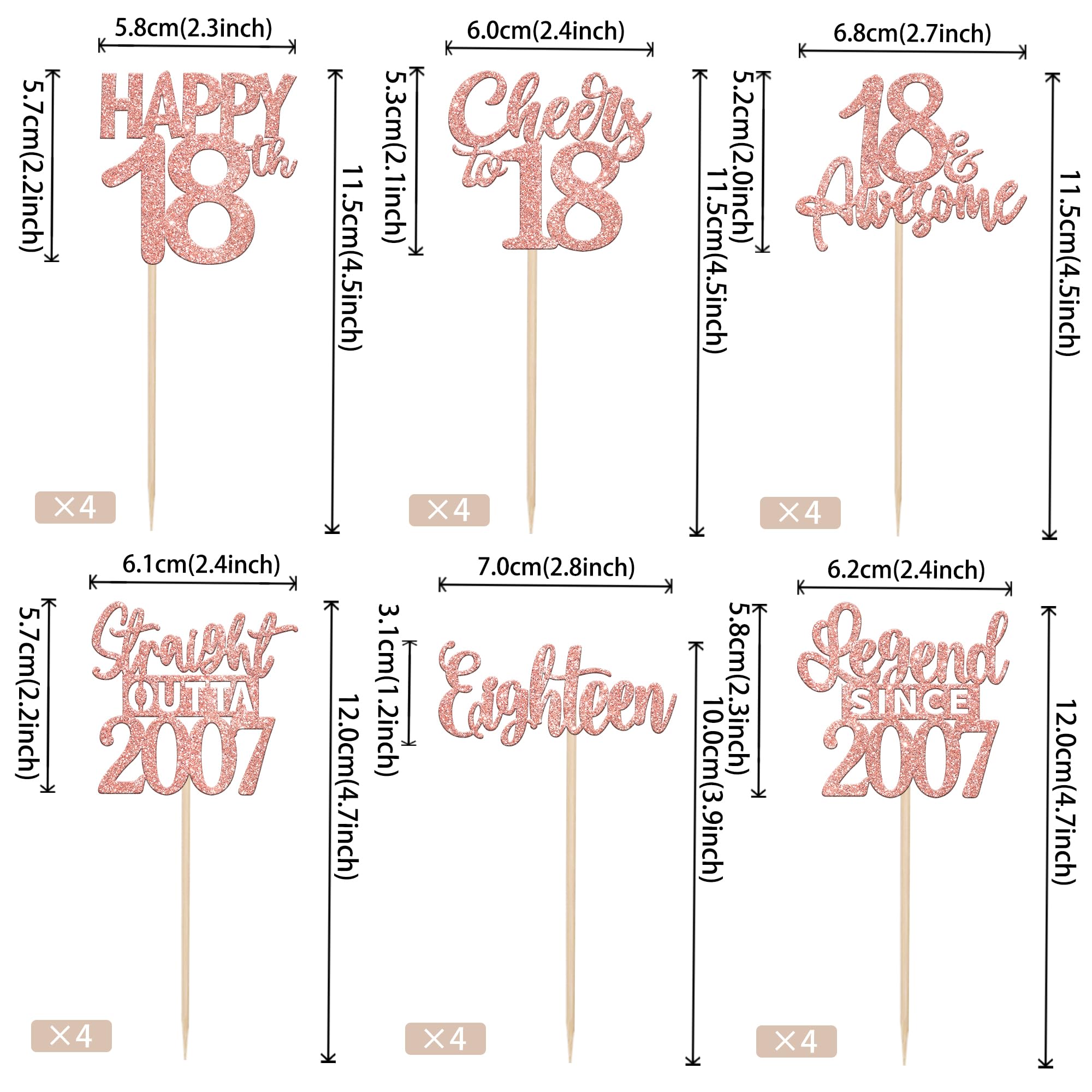 24PCS 18th Birthday Cupcake Toppers Eighteen Happy 18th Straight Outta 2007 Cupcake Picks Cheers to 18 Lengend Since 2007 Cake Decorations for 18th Birthday Anniversary Party Cake Decorations Supplies Perfect for legend since 2007 theme party, 18th anniversary theme party,cheers to 18 years theme party, 18 awesome theme party cupcake decorations supplies. Pack of 24 pcs,4 pcs of each design. The size is 2.3*4.5/ 2.4*4.5/ 2.7*4.5/ 2.4*4.7/ 2.8*3.9/ 2.4*4.7 inch ( with stick ) Made of high quality paper card stock,thick and sturdy. These straight outta 2007 cupcake toppers are one side glitter, another side is white, and they are intended for decoration only, please do not put them in oven or microwave. If the item you received has any defects, please contact us immediately. We will deal with it within 24 hours.