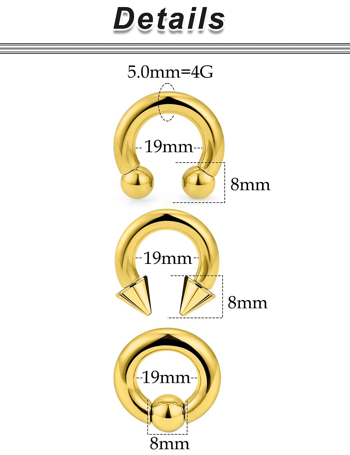 One Order Included 6 PCS Septum Rings Have 3 Styles, 1 Pairs Spike Horseshoes Septum Rings,1 Pairs Balls Horseshoes Septum Rings,1 Pairs Captive Bead Septum Rings,Economical Price with Trendy Design Give You a Colorful Day.