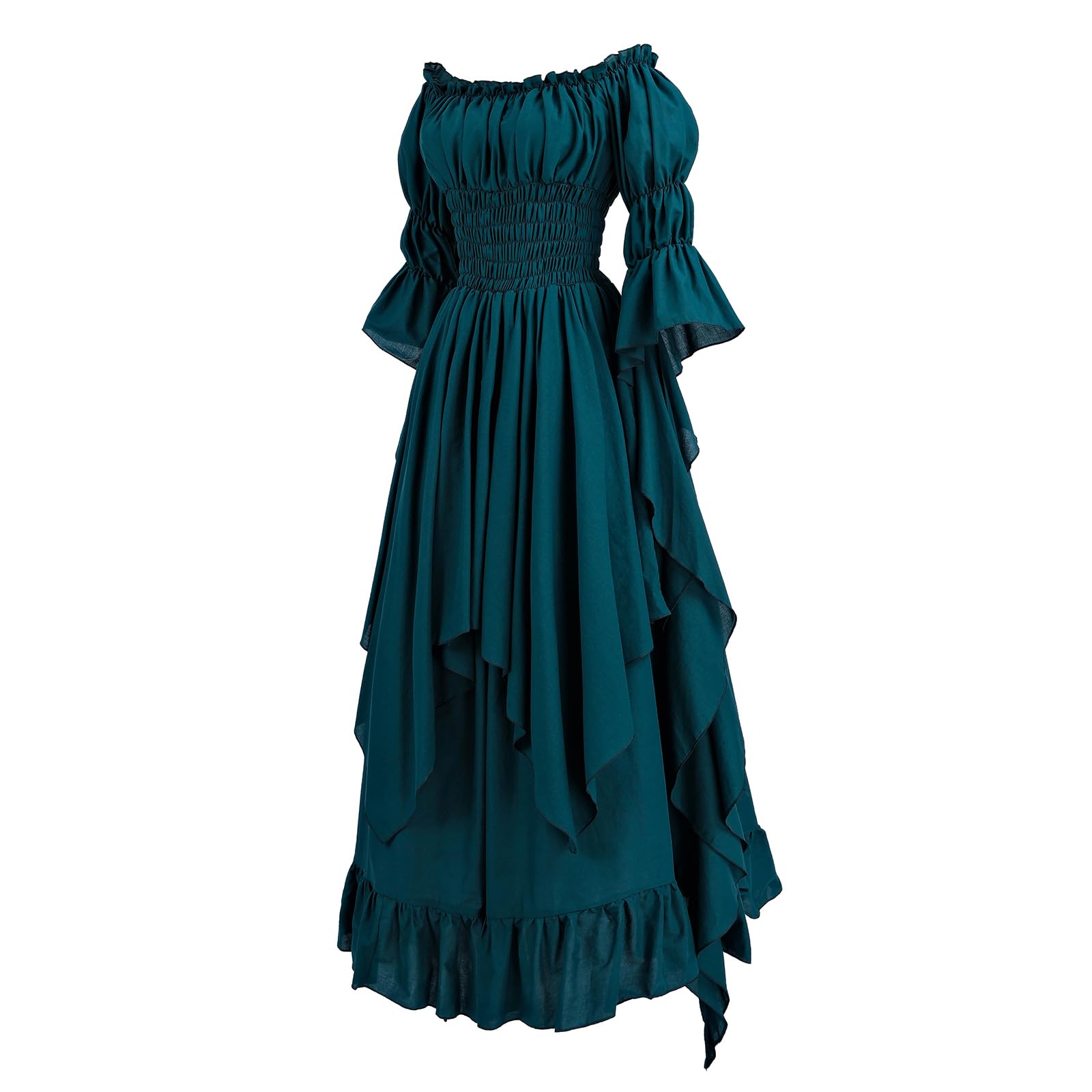 Renaissance Dresses Features - The off shoulder neckline is elastic. Dressed normally can show off your beautiful neck curve and collarbone. Off-shoulder wearing can show your charm more. The elastic high waist design is more tolerant to the figure, also suitable for plus size ladies. Elastic flared sleeves and streamers will make you look gorgeous.