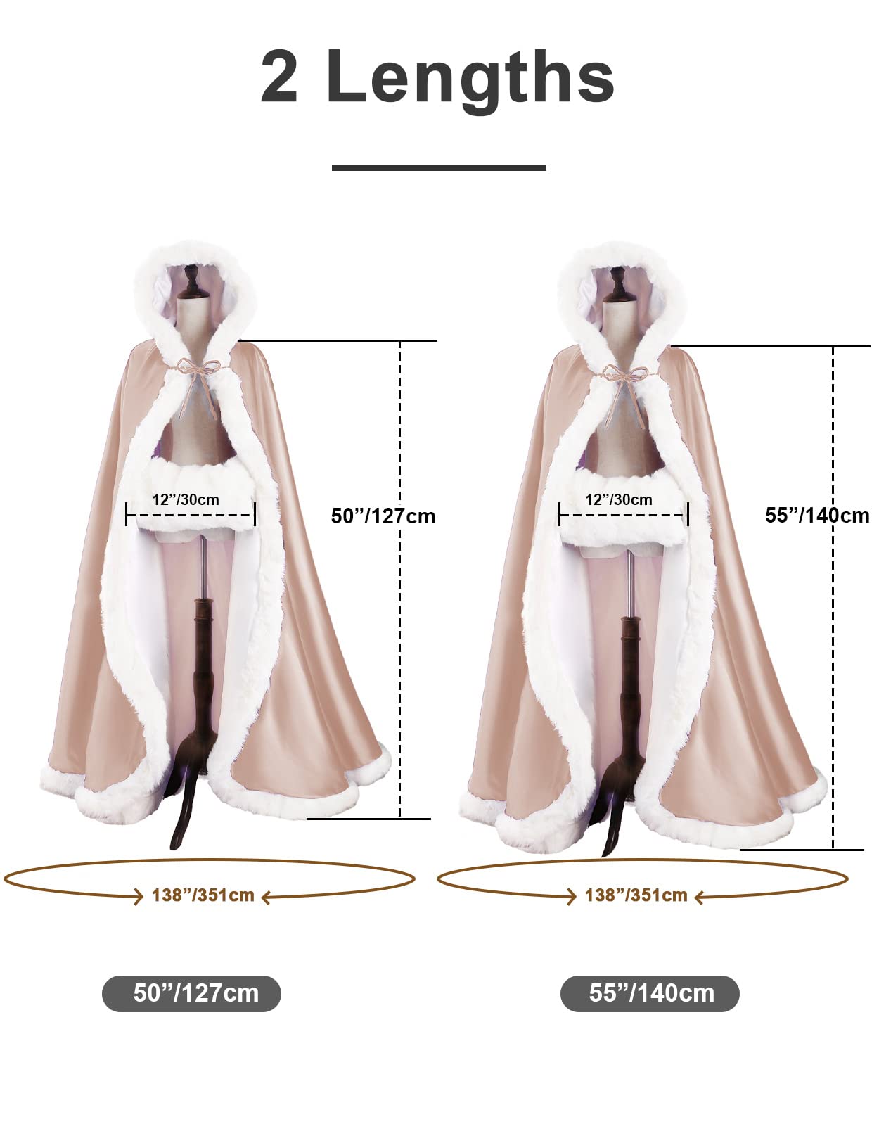 2 AVAILABLE LENGTH FOR YOUR DIFFERENT HEIGHT--- Cloak length: 50, 55-inch(from shoulder to end of train).You can choose different length as your height and need.