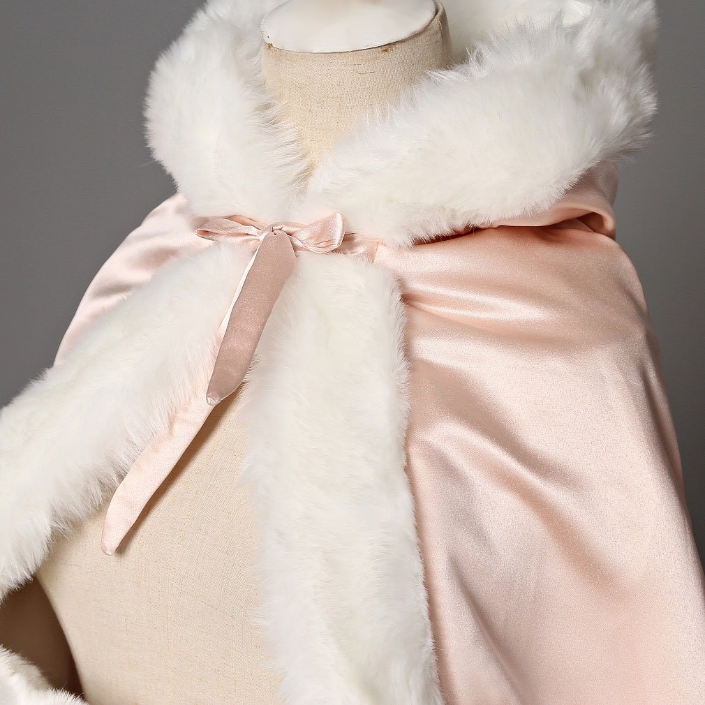 KEEP YOU PLENTY WARM & LOOKED FABULOUS --- This REVERSIBLE HOODED cape is made of two tone plushy rich polyester satin, secured at the neck with bias satin ties. Attention: The fur trimming is available in IVORY color only.