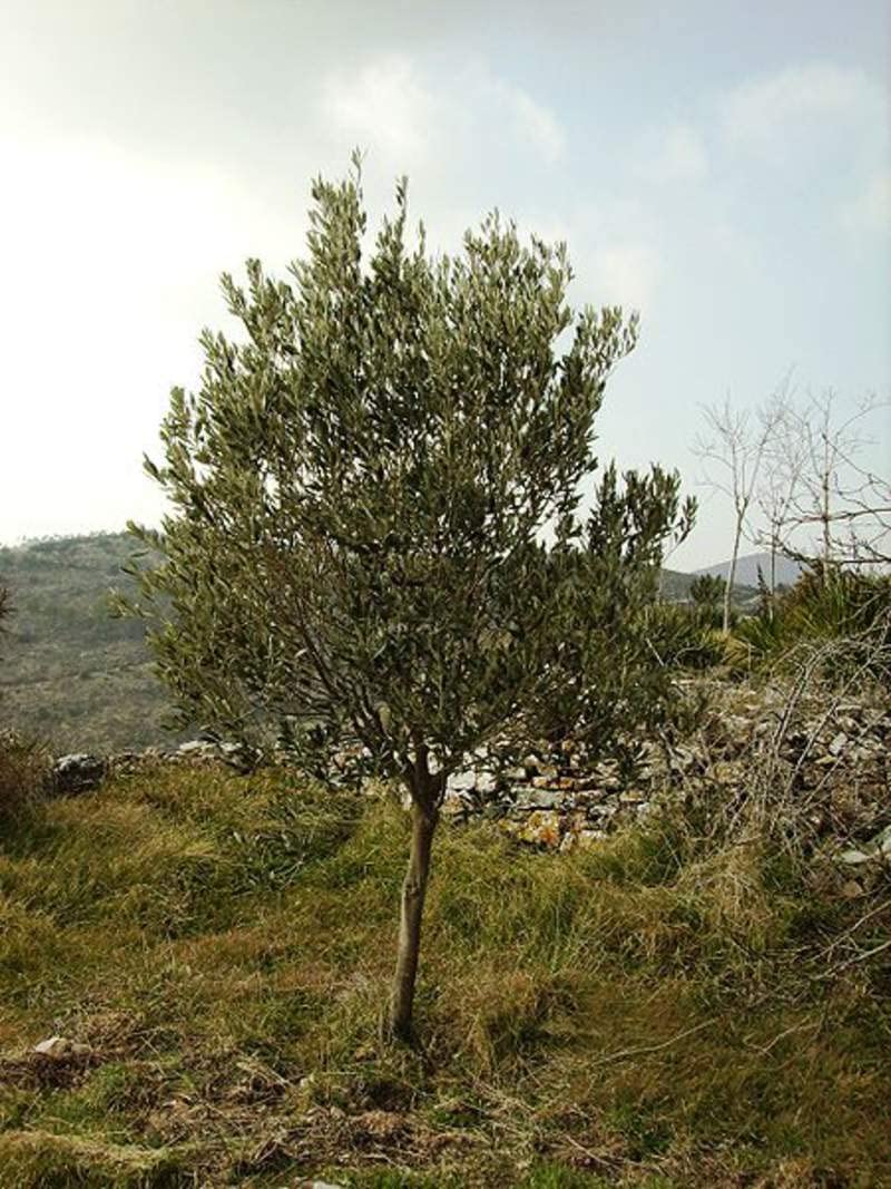 The olive tree, Olea europaea , is an evergreen tree or shrub native to the Mediterranean , Asia and Africa . It is short and squat, and ly exceeds 8–15 metres (26–49 ft) in height. The silvery green leaves are oblong in shape, measuring 4–10 centimetres (1.6–3.9 in) long and 1–3 centimetres (0.39–1.2 in) wide. The trunk is typically gnarled and twisted.The small white, feathery flowers , with ten-cleft calyx and corolla , two stamens and bifid stigma , are borne generally on the last year's wood, in racemes springing from the axils of the leaves.The fruit is a small drupe 1–2.5 centimetres (0.39–0.98 in) long, thinner-fleshed and smaller in wild plants than in orchard cultivars. Olives are harvested in the green to purple stage. Canned black olives may contain chemicals (usually ferrous sulfate ) that turn them black artificially. Olea europaea contains a seed commonly referred to as a pit or a rock. Scarification: Soak in water, let stand in water for 24 hours. Stratification: none required. Germination: sow seed 3/8" deep, tamp the soil, mulch the seed bed. No pre-germination treatment required; sow seed 3/8 deep, tamp the soil, mulch the seed bed, remove mulch upon germination. Other: germination may be delayed until the following year, cracking the seed coat may help germination.