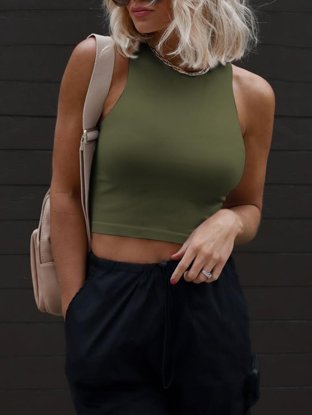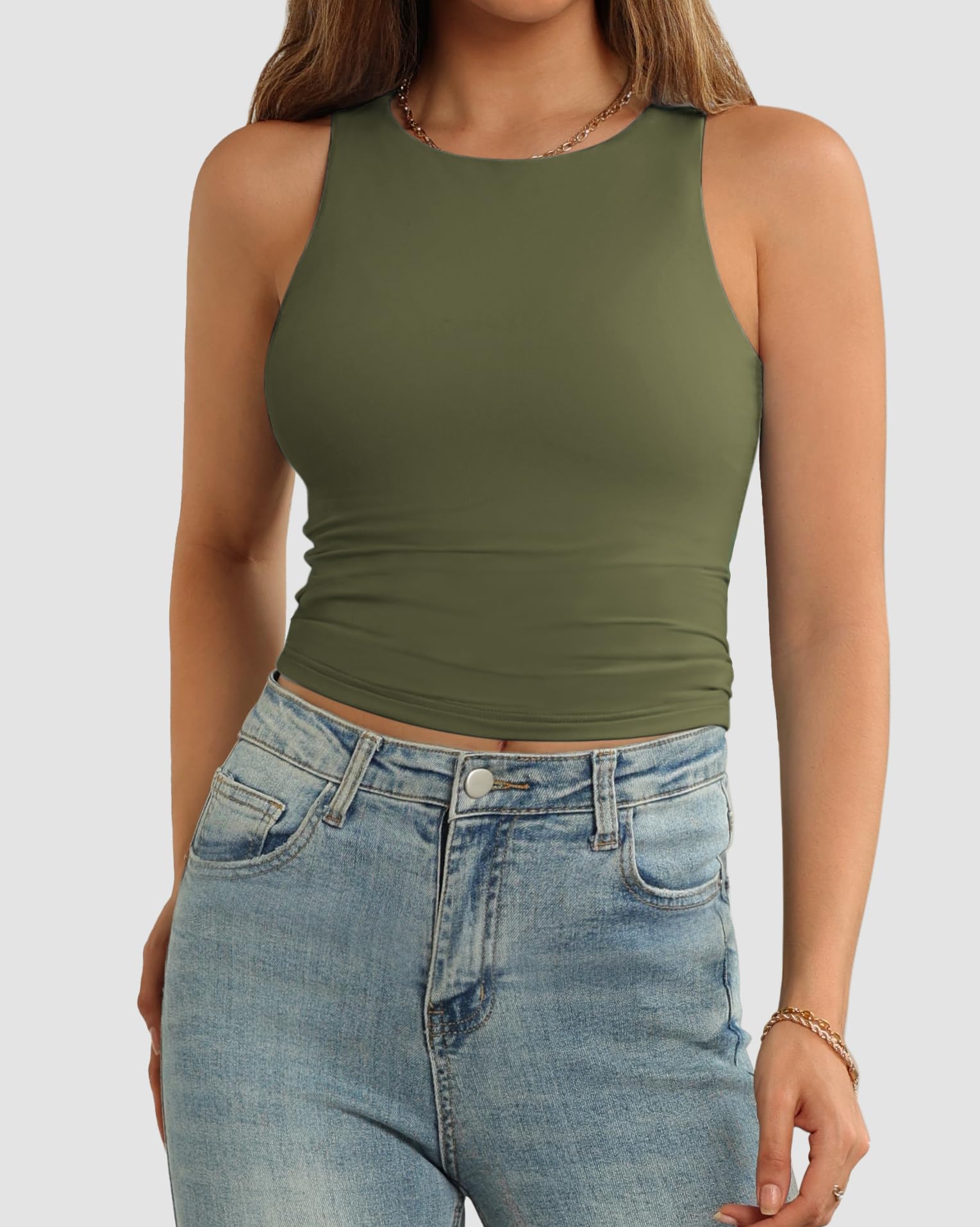 Fashion Design: Double layer of this crop top can wear without bra,and the material also good for work out sports,high neck design and crop top style,basic,fitted,casual style,crew neck ,sleeveless, slim fit