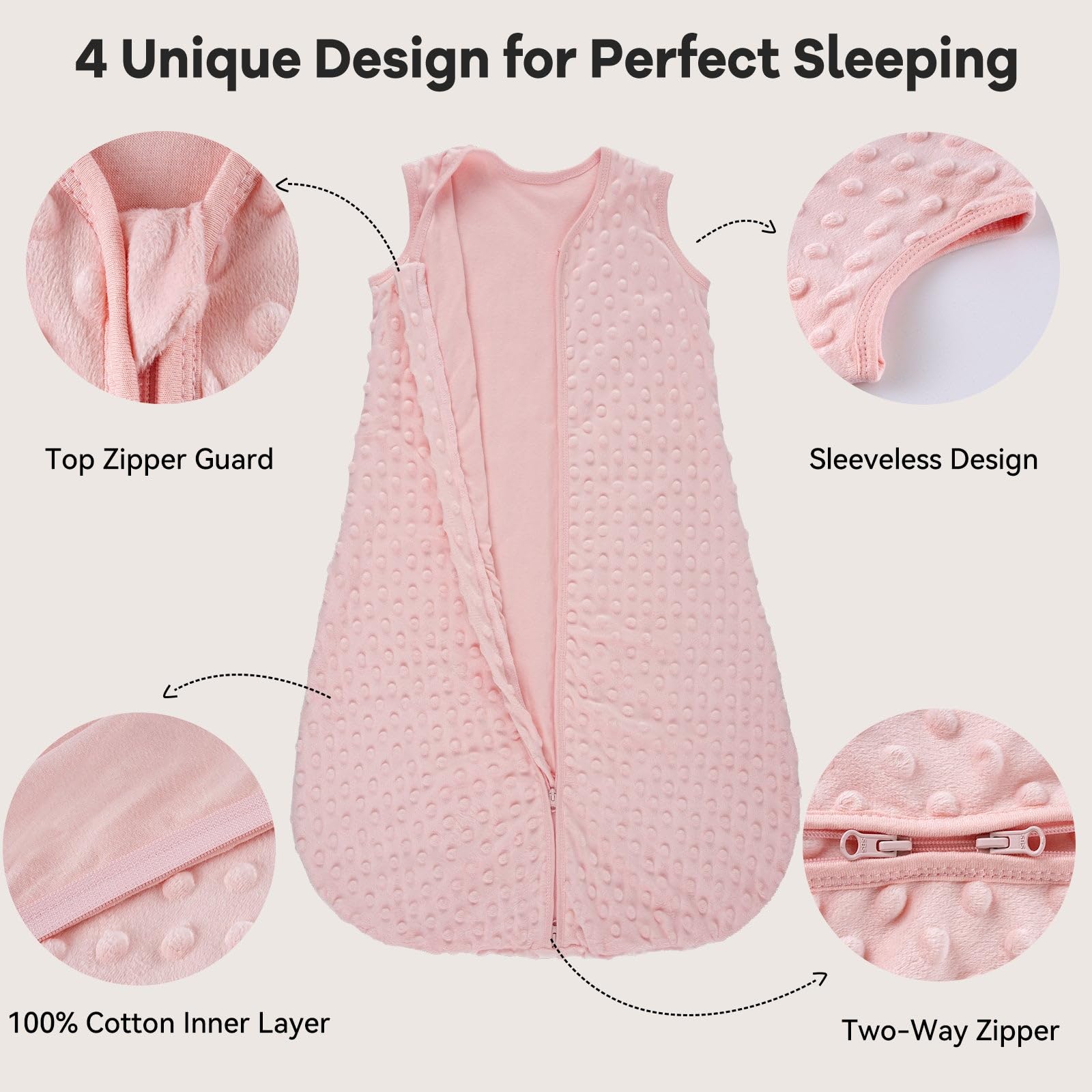 Soothing Dots Design - The fleece sleep sack with raised dots resemble mom's touch, giving your baby a familiar sense of security and soothing baby to sleep through the night. Suitable for temperatures between 69-73°F (21-23°C), this 1.5 tog sleep sack creates a warm and cozy environment for your baby.