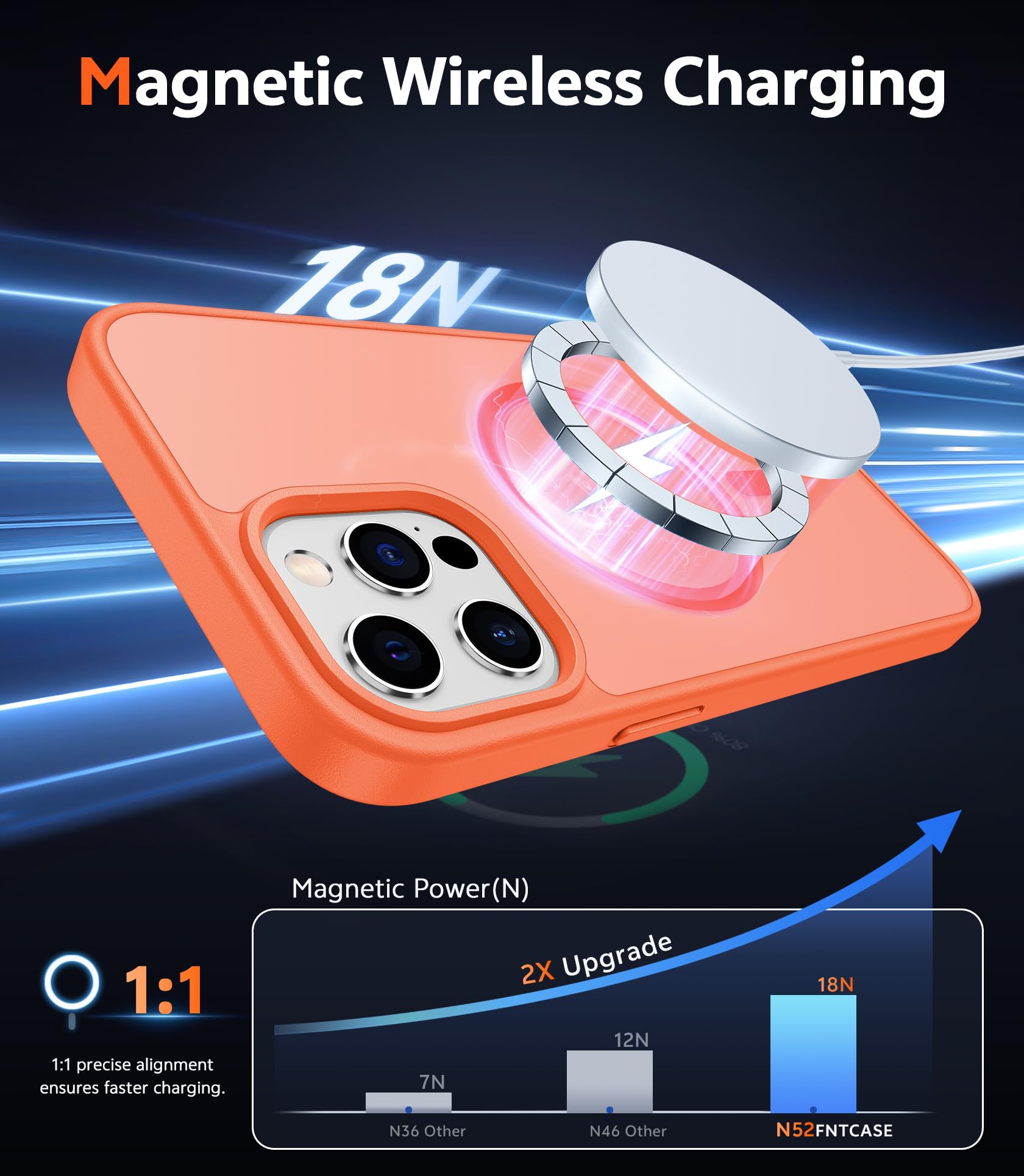 Strong Magnetic Attraction: The iPhone 12 Pro Max magnetic case has built-in 38 super N52 magnets. Its magnetic attraction reaches 2400 gf, which is almost 7X stronger than ordinary, therefore it won't fall off no matter how it shakes when you are charging