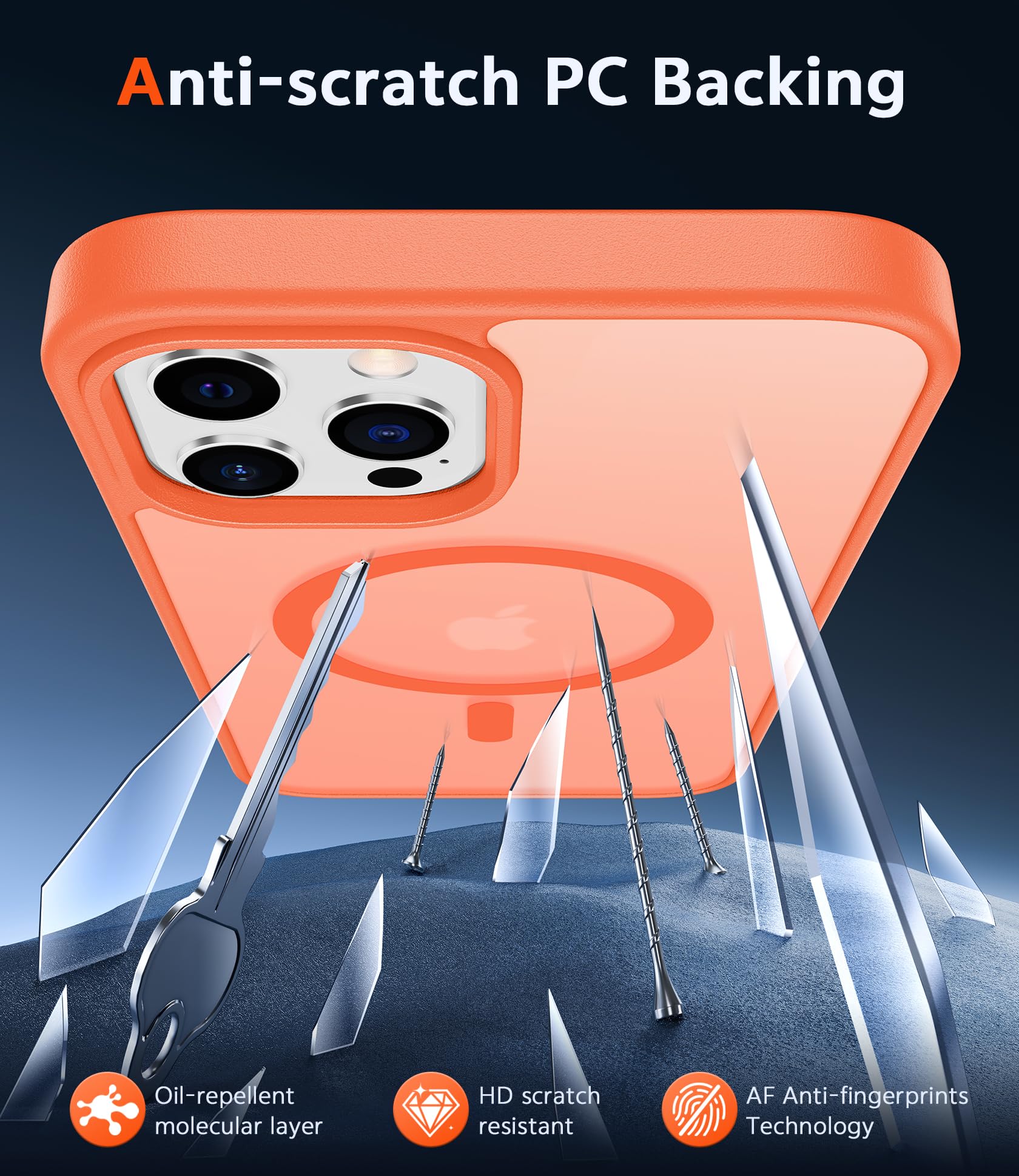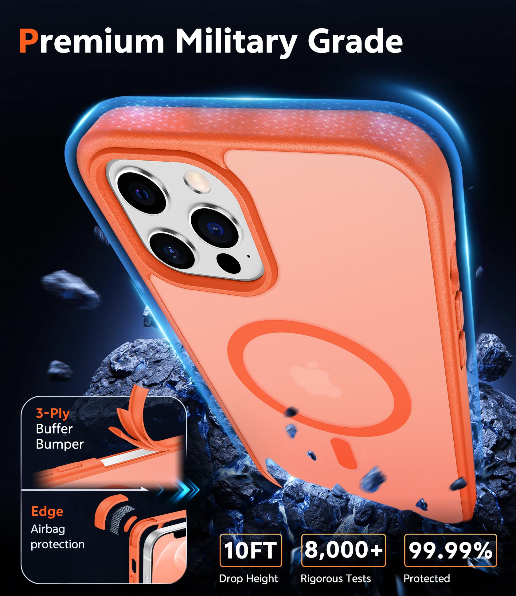 FNTCASE for iPhone 12 Pro-Max Case: Matte Magnetic Phone Cases Compatible with Magsafe Slim Anti Yellowing Military Grade Drop Protection Rugged Protective Translucent Cell Phone Cover (C-Orange)