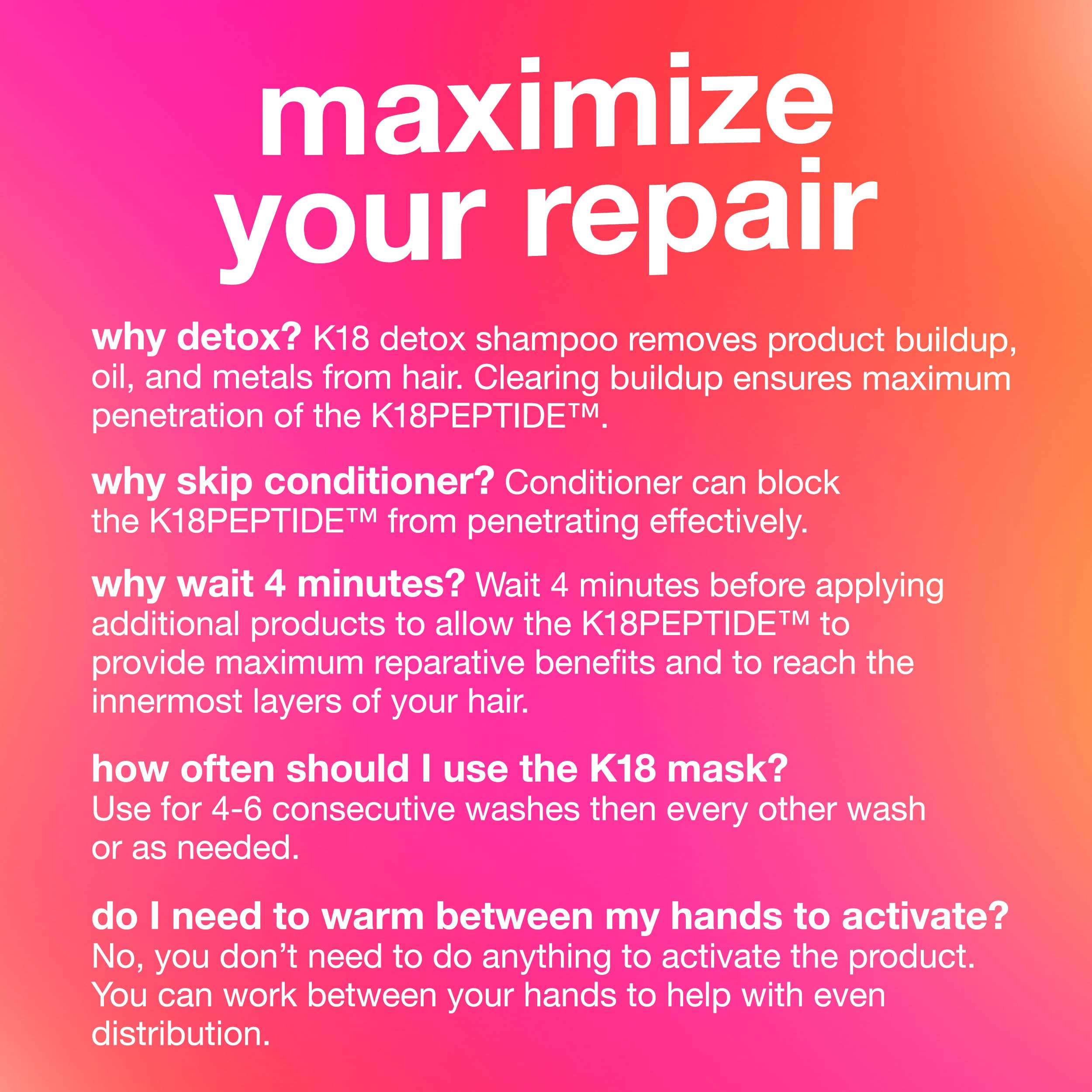 Lasting Results That Won't Wash Away: The K18Peptide mimics the natural building blocks of hair and therefore is recognized as natural—so it’s able to integrate itself with the keratin chains to rebuild and restore hair immediately and over time.