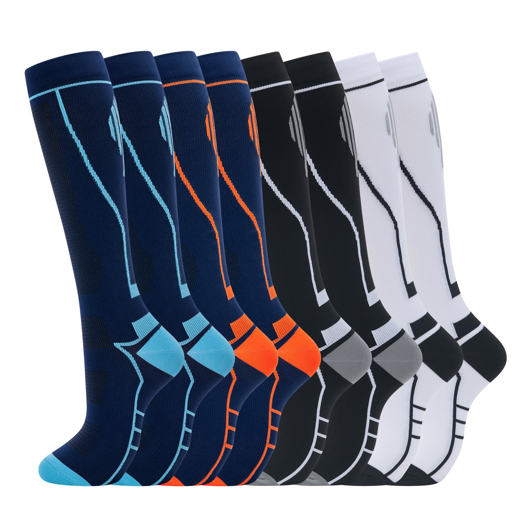VERSATILE STYLE FOR ALL OCCASIONS: Our compression socks for men and women fit various lifestyles. Whether you're running, traveling, nursing, flying, pregnant, or need muscle support, these long compression socks men have you covered with high-quality performance. Suitable for all sports, cycling, skiing, mountain climbing, football, hiking, jogging, tennis, marathon, hockey, soccer, basketball, golf, etc. From daily wear to special occasions, experience lasting comfort.