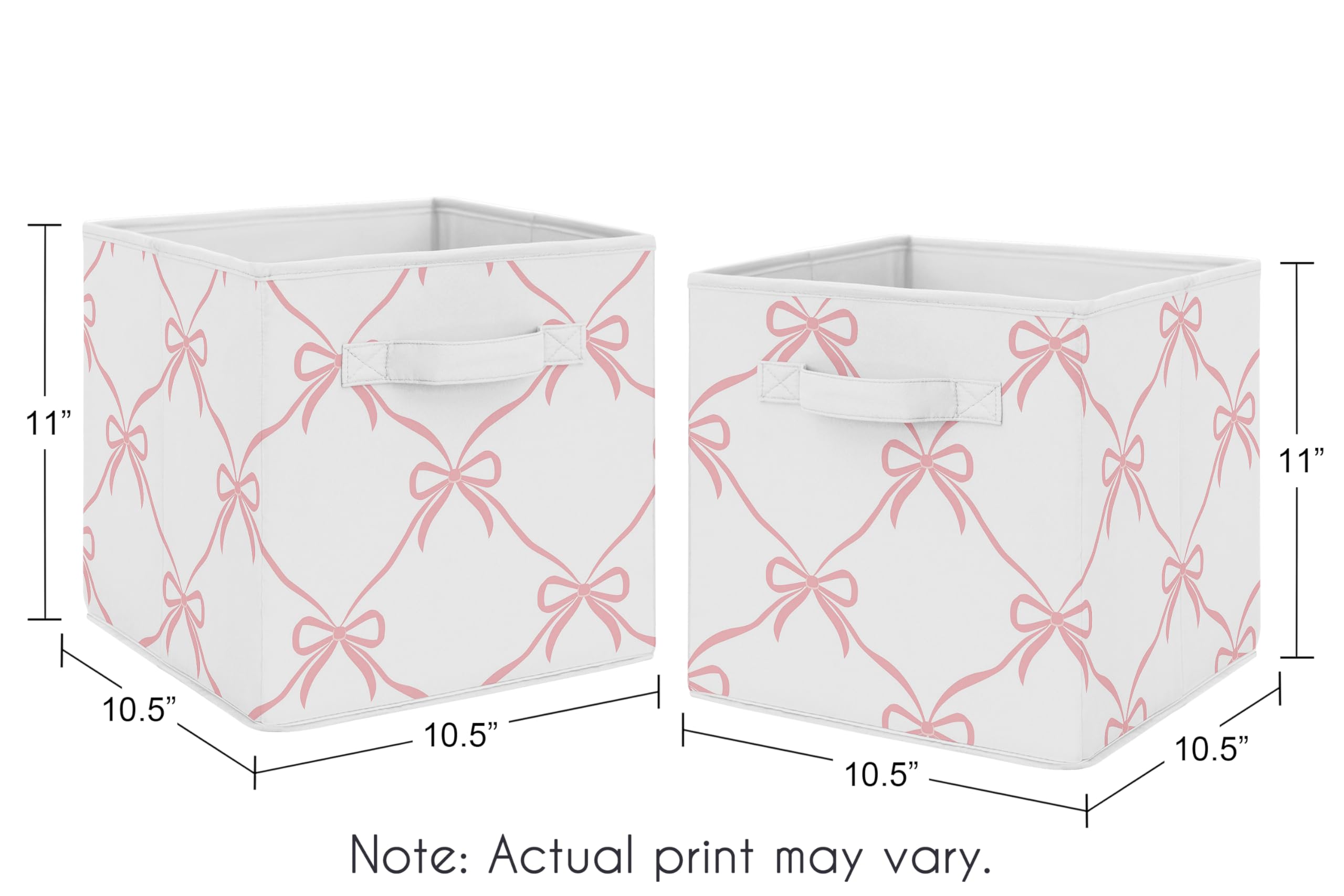 These brushed microfiber fabric storage bins feature an exclusive design of a blush pink and white shabby chic dancer princess bows print with white cotton fabric handle.