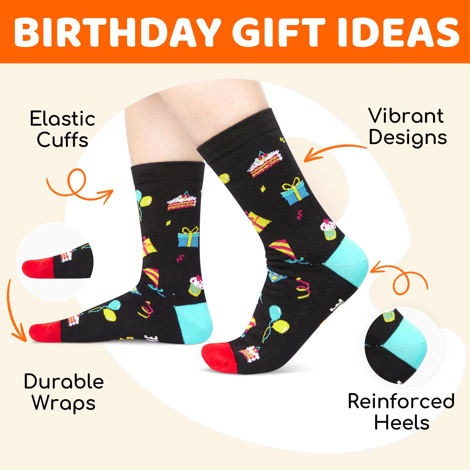 QUALITY MATERIAL: Our birthday socks are made of 80% cotton, 15% polyamide and 5% elastane to ensure they are soft, comfortable, stretchy, and breathable. They won't fade and are machine washable.