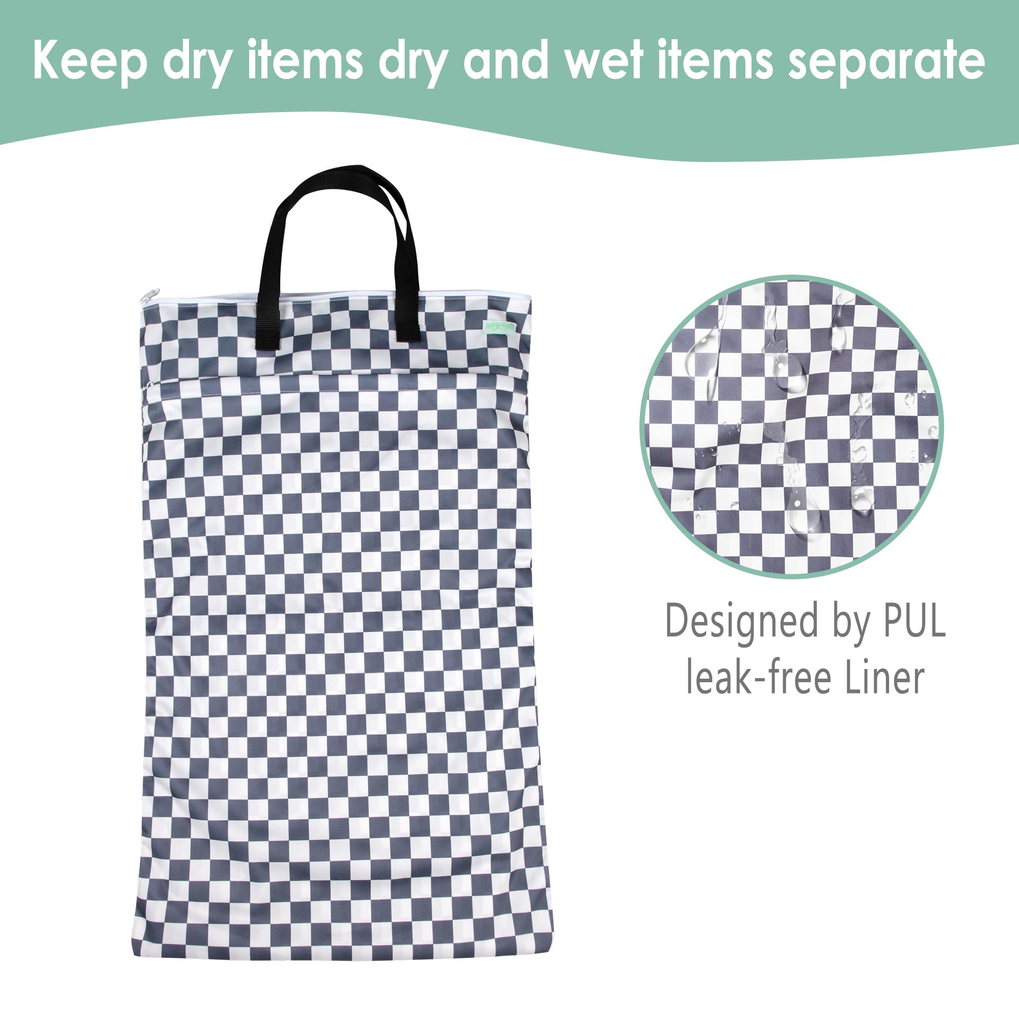 MACHINE WASHABLE - Tumble dry low, can last up to hundreds washes; Wet items must be fully wrung out before placed in the bag, excess water may cause leaks through the seams; We recommend purchasing two wet bags, so you can rotate them in the wash
