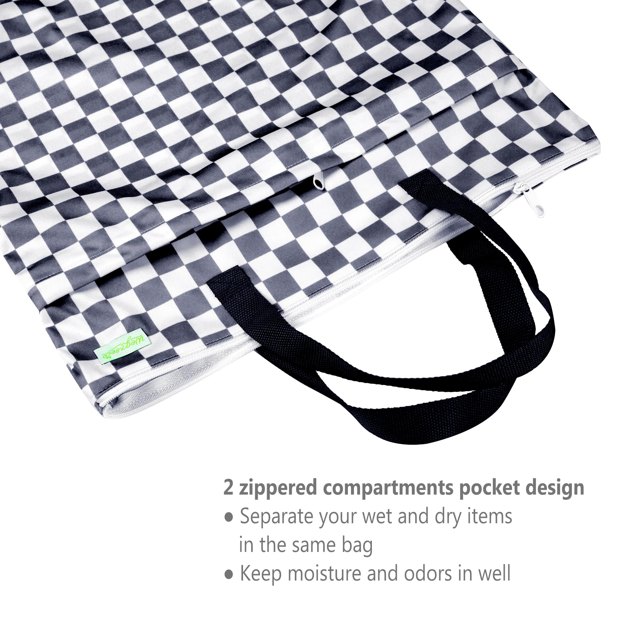 HANDLES & WET POCKET KEEPS MESSES IN - The nylon handles allows for easy hanging on a hook or doorknob on daily carry; The two zippered compartments pocket design keep moisture in well; The clean items in the front zippered pocket and the dirty or wet items in the zippered "wet" section keeping moisture in