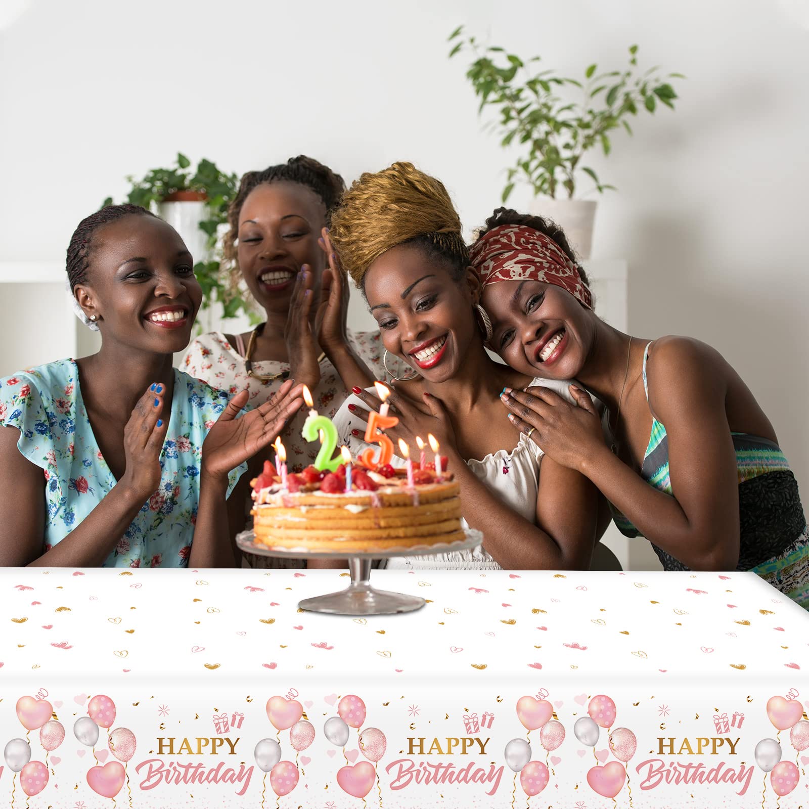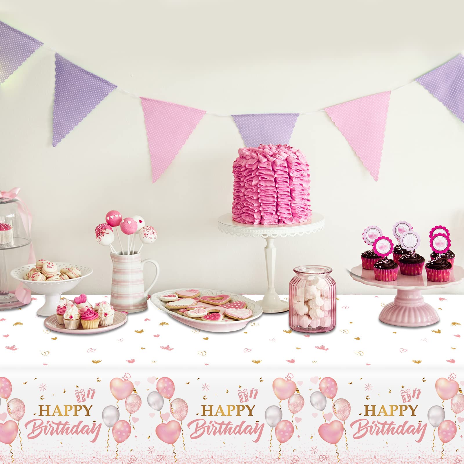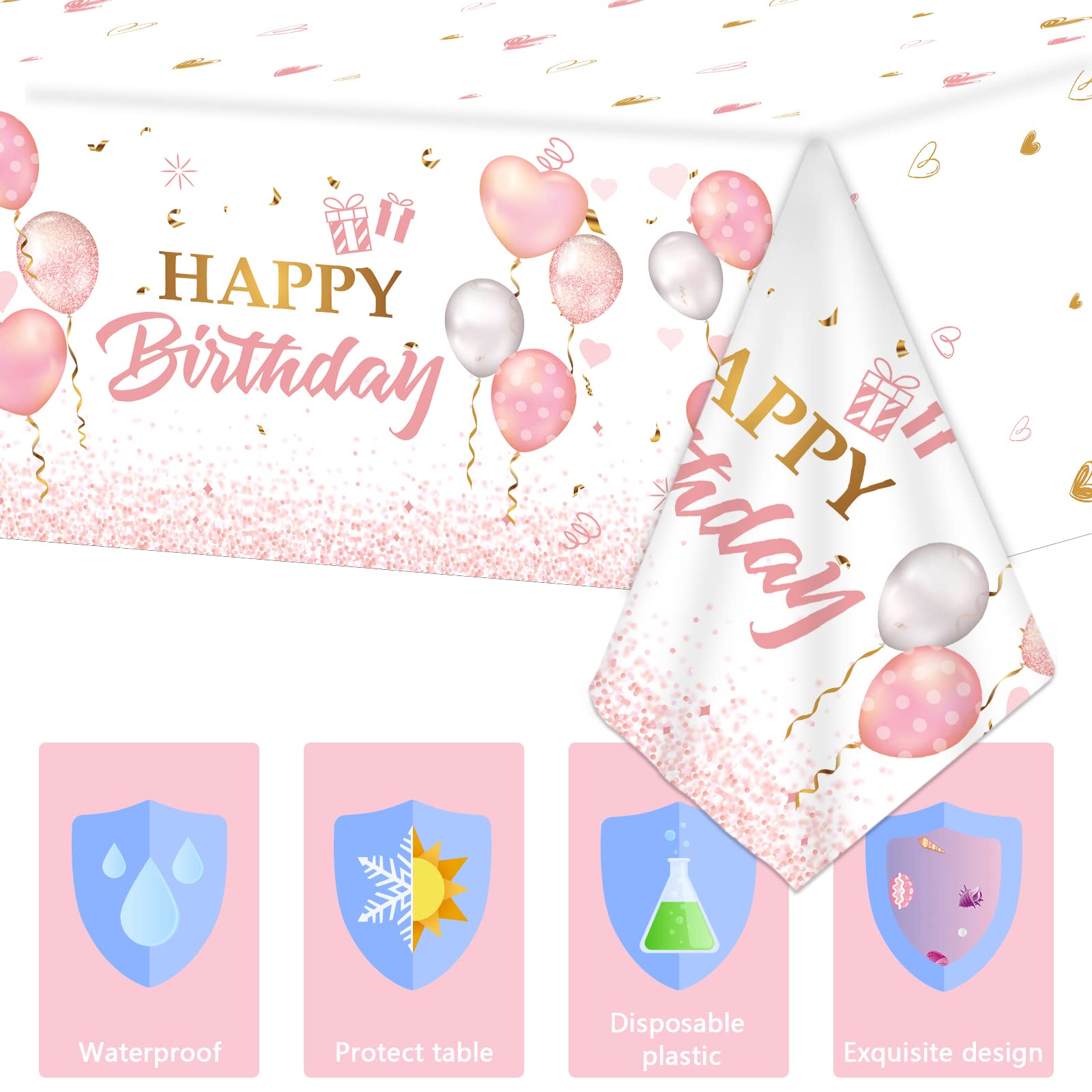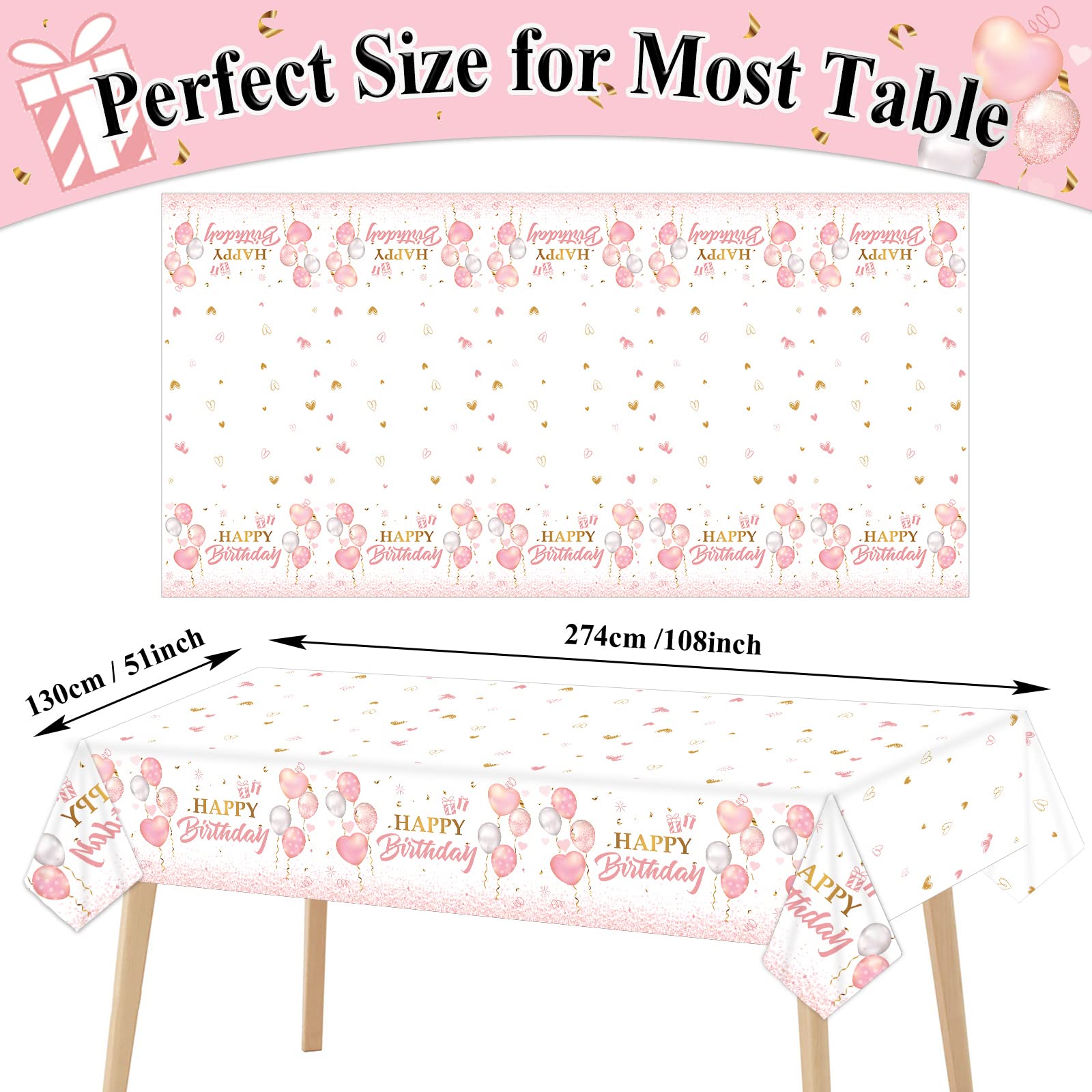 Perfect Size: The pink happy birthday party tablecloth measures 137 x 274 cm/54 x 108 inches, large enough to cover any standard 8-foot rectangular table, suitable for birthday table decoration. Birthday party tablecloths can be easily folded or cut into small tables; two or three can be put together to allow more people to come to the party.