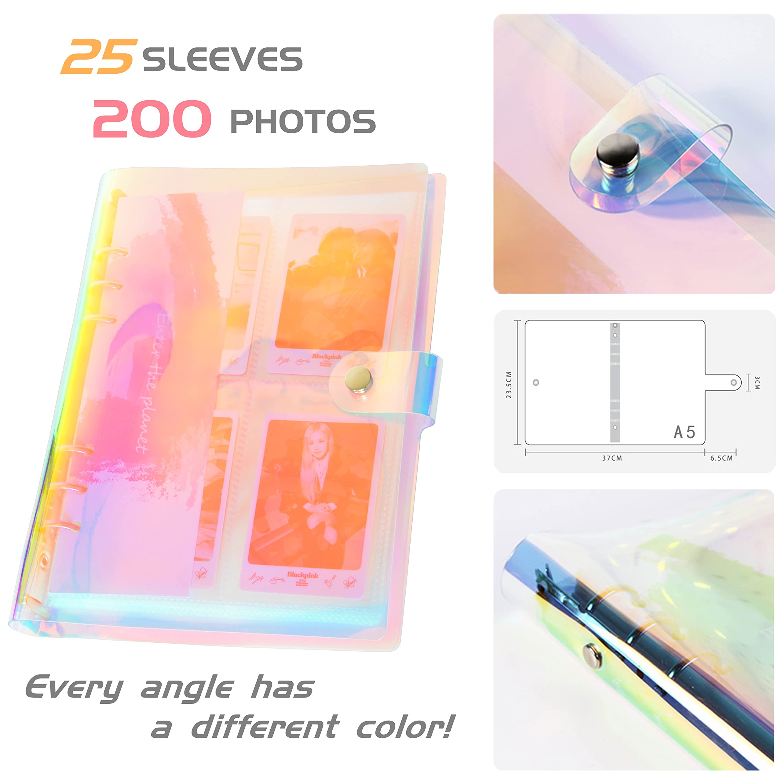 【Stylish & Beautiful Design】Instax photo album is modern, simple design, unique laser cover can show different color from different angle,especially under sun is beautiful.Photocard Binder with clear inner pockets are fashion and durable.