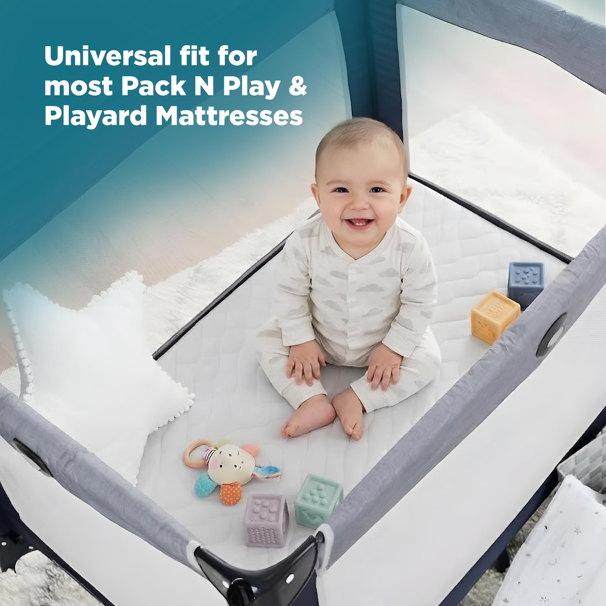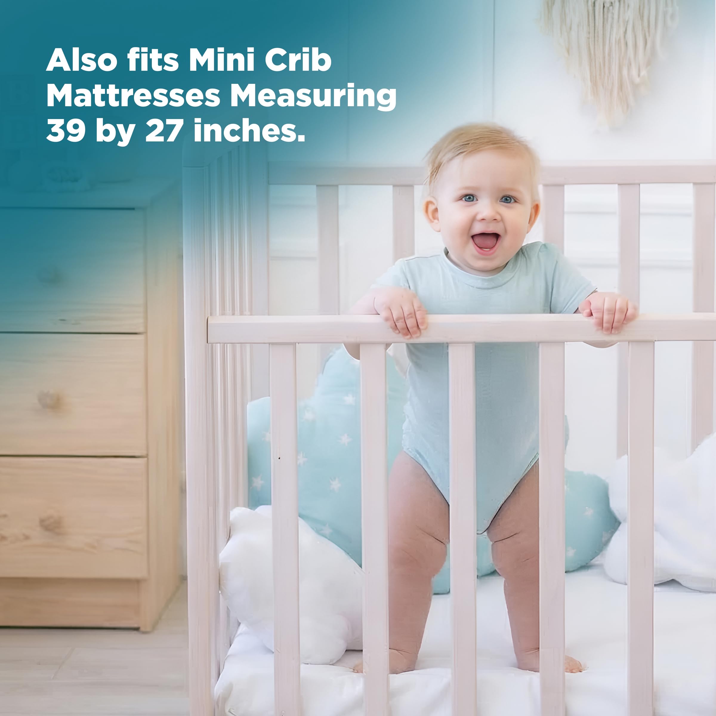 FITTED SHEET STYLE: Deep skirt, up to 8'', fits all 39"x27'' Pack N Play, Playard and Mini Crib mattresses. Tight & snug, with no struggle to get it back on after you wash it. Keep your crib mattress clean & protected while giving your baby a cozy & restful night’s sleep.