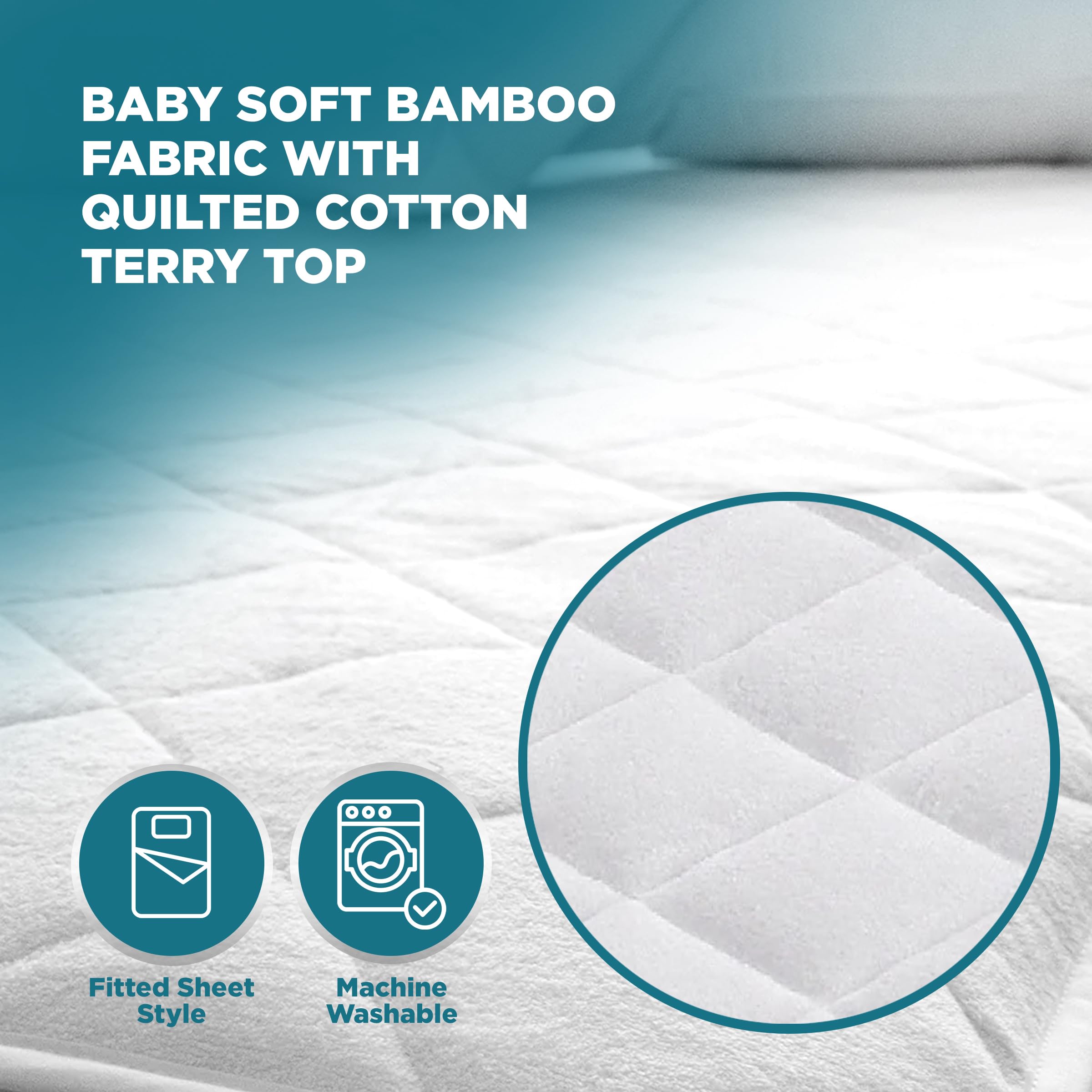 ULTRA-SOFT QUILTED SURFACE: The quilted terry cloth top is so soft and luxurious it is almost a shame to cover it with a sheet and it feels like your baby could almost sleep directly on it! The ideal solution for keeping your mattress clean and fresh.