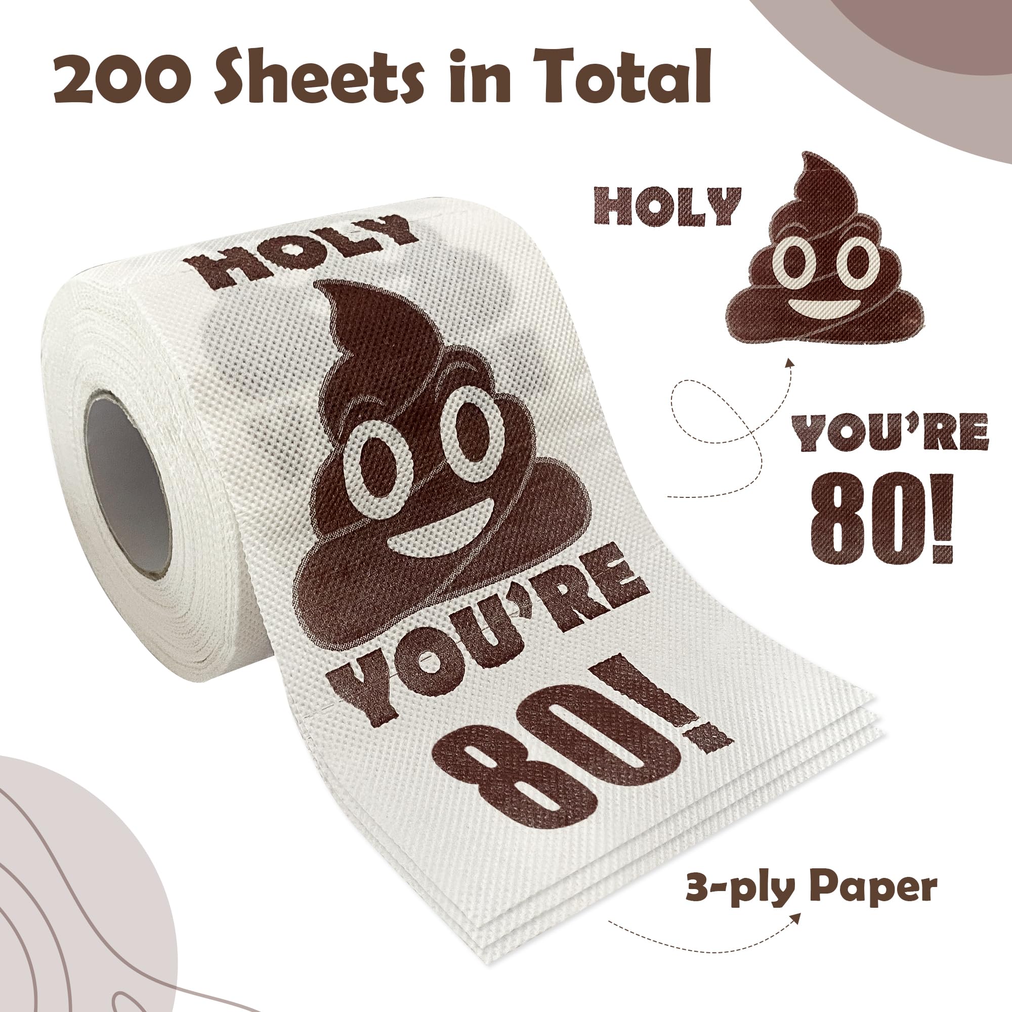 Durable & Practical: Our High-Quality funny Birthday toilet paper rolls are funny and practical! These comfy Birthday gift toilet paper gifts are great for use and super soft and absorbent! Need a laugh at the office or at home? Add to the 80th birthday turners' restroom or use it as a streamer to decorate their home, and catch their funny reaction