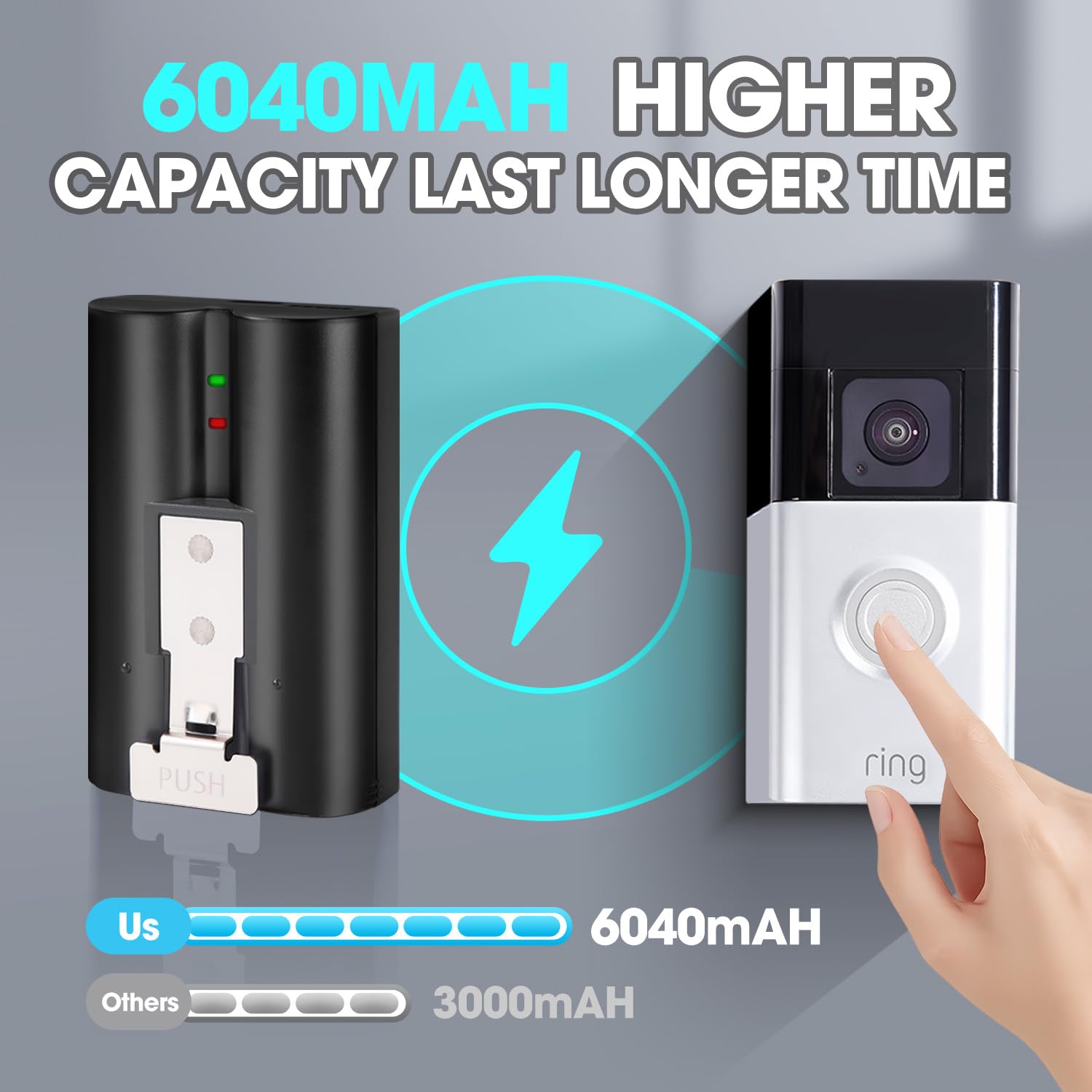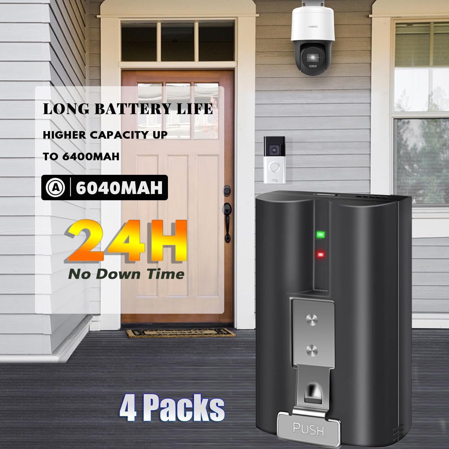 【UPGRADED 6040mAh LONG-LASTING POWER】:Upgrade your Ring setup with 4 high-capacity batteries designed specifically to last longer. Built with reliable Li-ion cells and stable 3.65V output. Extends runtime for continuous security monitoring.