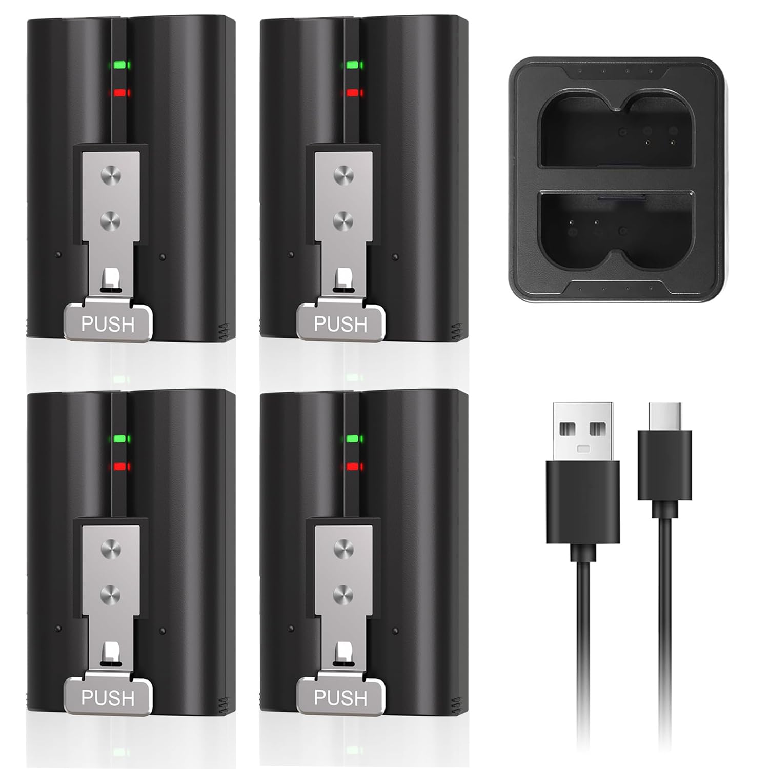 【WHAT YOU GET & RELIABLE WARRANTY】:Package includes: 4× 6040mAh batteries, 1× dual charging station, 1× Micro-USB cable.Backed by 12-month warranty and responsive customer service.