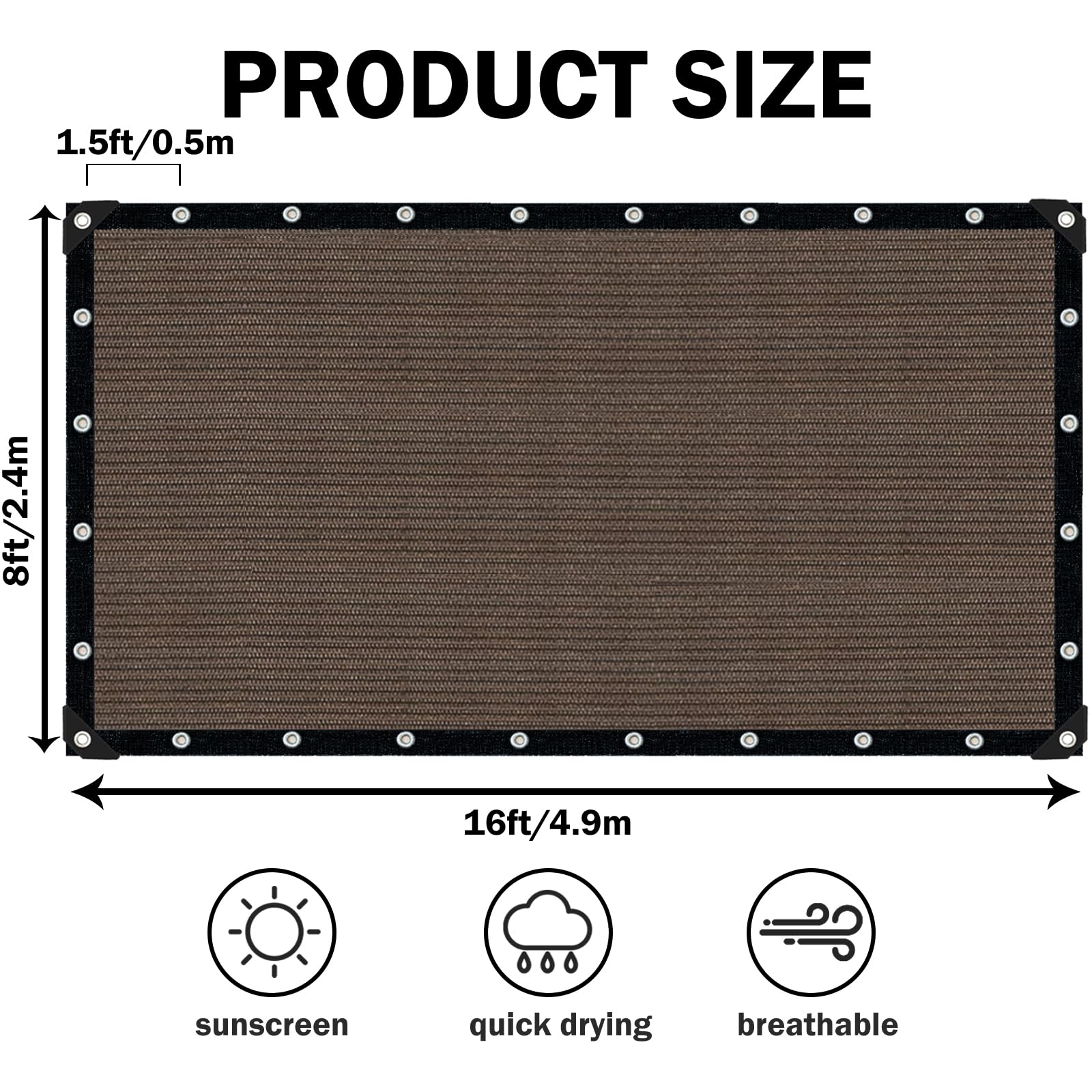 Premium Material: The shade fabric is made of high-density polyethylene (HDPE). It is a high-quality knitted fabric with excellent tear and abrasion resistance. At the same time, sun screens for patio allows the circulation of air and light, ensuring good ventilation and temperature control; its design allows rainwater to pass through and prevents water accumulation.