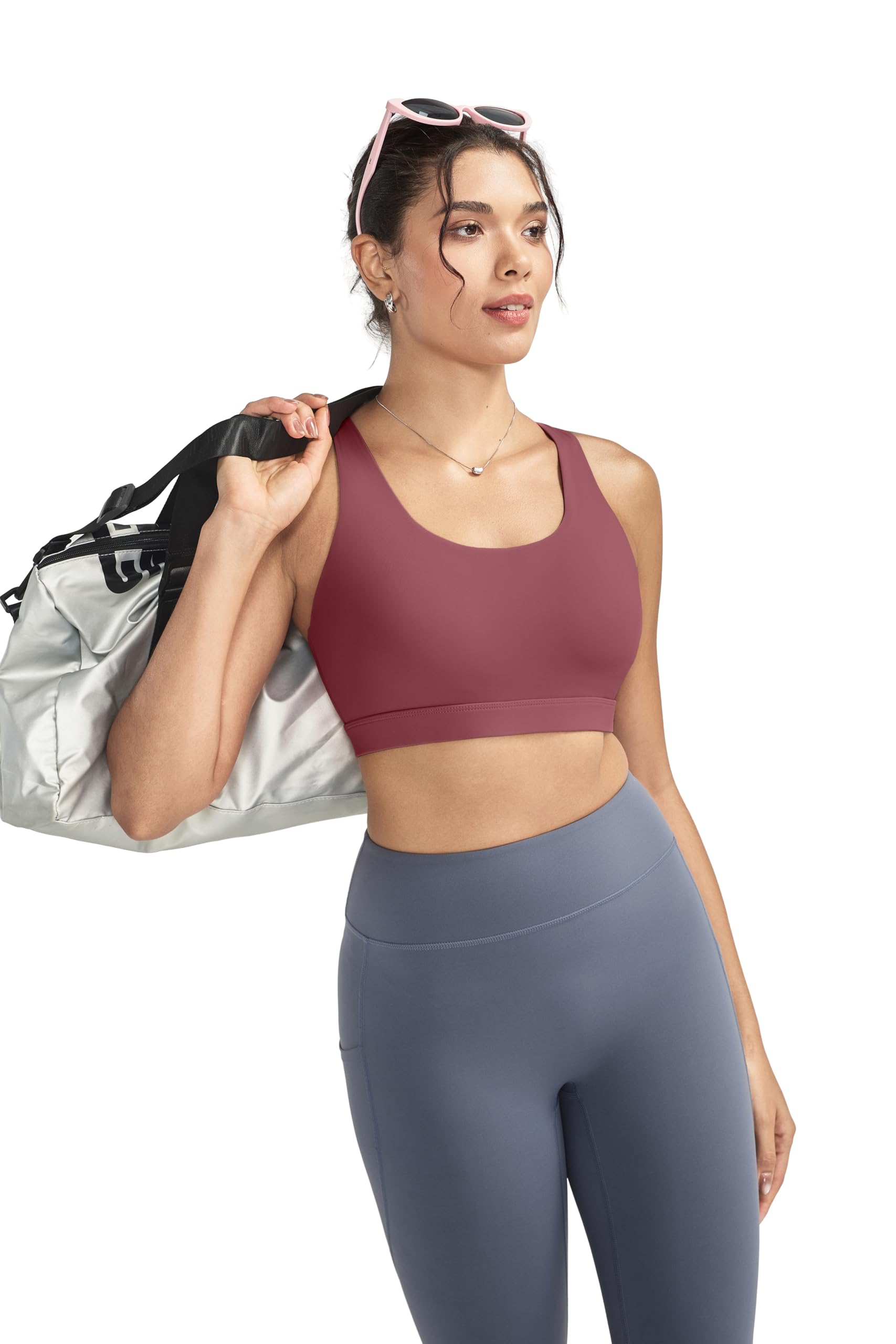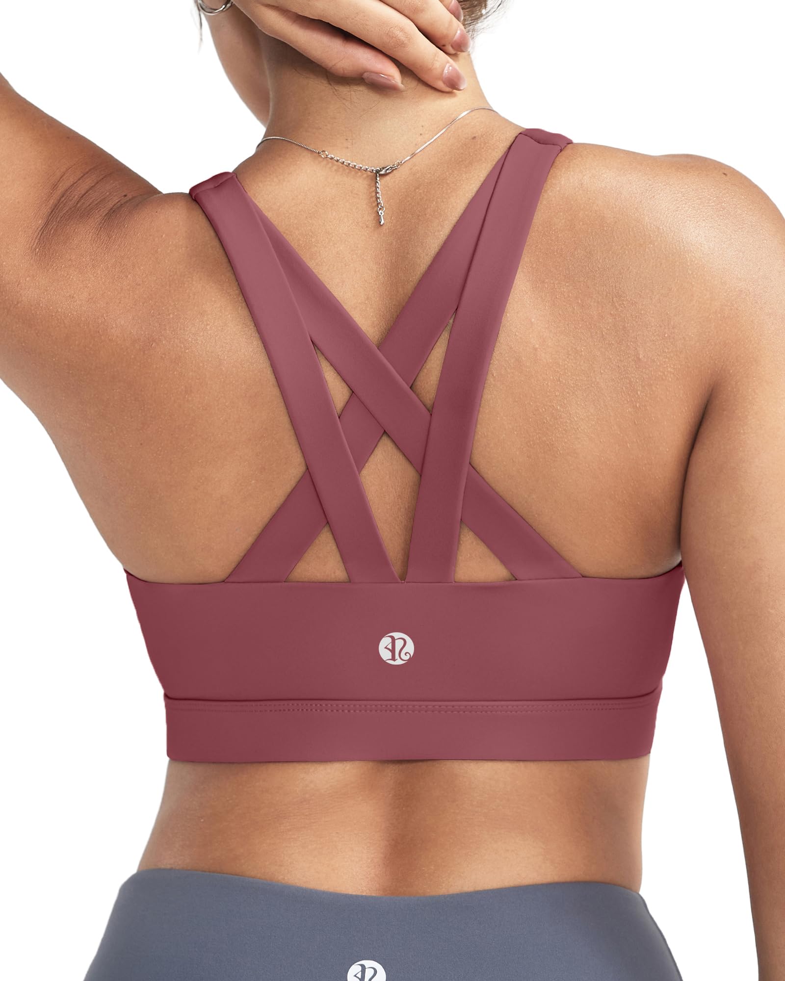 WHY WE MADE THIS:Need a sports bra that does it all? Look no further! This sweat-wicking cross-strap bra gives you the coverage and support you need for yoga, run, and the gymβ€”without restricting your movement or breath. fabric has added lycra that allows the bra to stretch with you and retain its shape over time. Slip in optional, removable cups for full coverageβ€”if you want it. This bra is intended to provide medium support for great shape retention, long-lasting comfort.