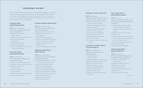 The Complete Dehydrator Cookbook: the definitive guide to deliciously easy meals From sun-dried produce in ancient Egypt to salty air-dried fish aboard Viking ships, dehydration is one of the oldest, most versatile methods of preservation―creating foods that are compact, perfect for traveling, and great for a quick snack or backup meal. The Complete Dehydrator Cookbook is your all-in-one guide to easy, affordable home drying, pairing delicious dehydrated foods with easy-to-navigate guidance to get you drying in no time. Whether you're preserving seasonal crops or making protein-packed camping snacks, this dehydrator cookbook takes you through the ins and outs of dehydrating, storing, and rehydrating a wide variety of foods. The Complete Dehydrator Cookbook is also brimming with 125 simple dehydrator recipes for everything from stews and curries to herbal teas and spice blends to ready-to-eat breads, crackers, and cookies. The Complete Dehydrator Cookbook includes: A to Z drying―Explore the essential equipment you'll need, troubleshooting tips, and detailed directions on how to dehydrate more than 75 different kinds of food, including fruits, vegetables, herbs, nuts, yogurt, tofu, meat, pasta, rice, and more. Dehydrated dishes―Enjoy a variety of deliciously healthy recipes in this dehydrator cookbook, including just-add-water instant meals, and snacks like fruit leathers, chips, and jerky. Low temp, big flavors―Raw foodists will find plenty of low-temp, plant-based foods to make, like Mixed Vegetable Bread, Sweet and Salty Dried Almonds, and Double-Chocolate Biscotti. Whether you're on the go or snacking at home, the portable dishes in this dehydrator cookbook will add some deliciousness to your pantry.