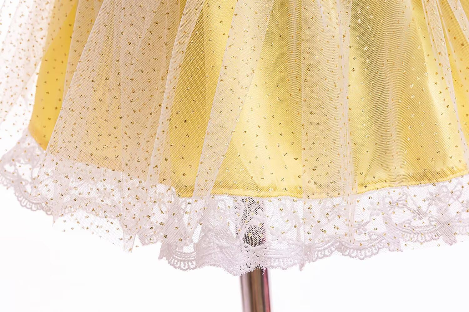 Baby girls princess peach costume dressed with classic character, It features realistic details with cuffs, the skirt is stacked with layers of cake skirt