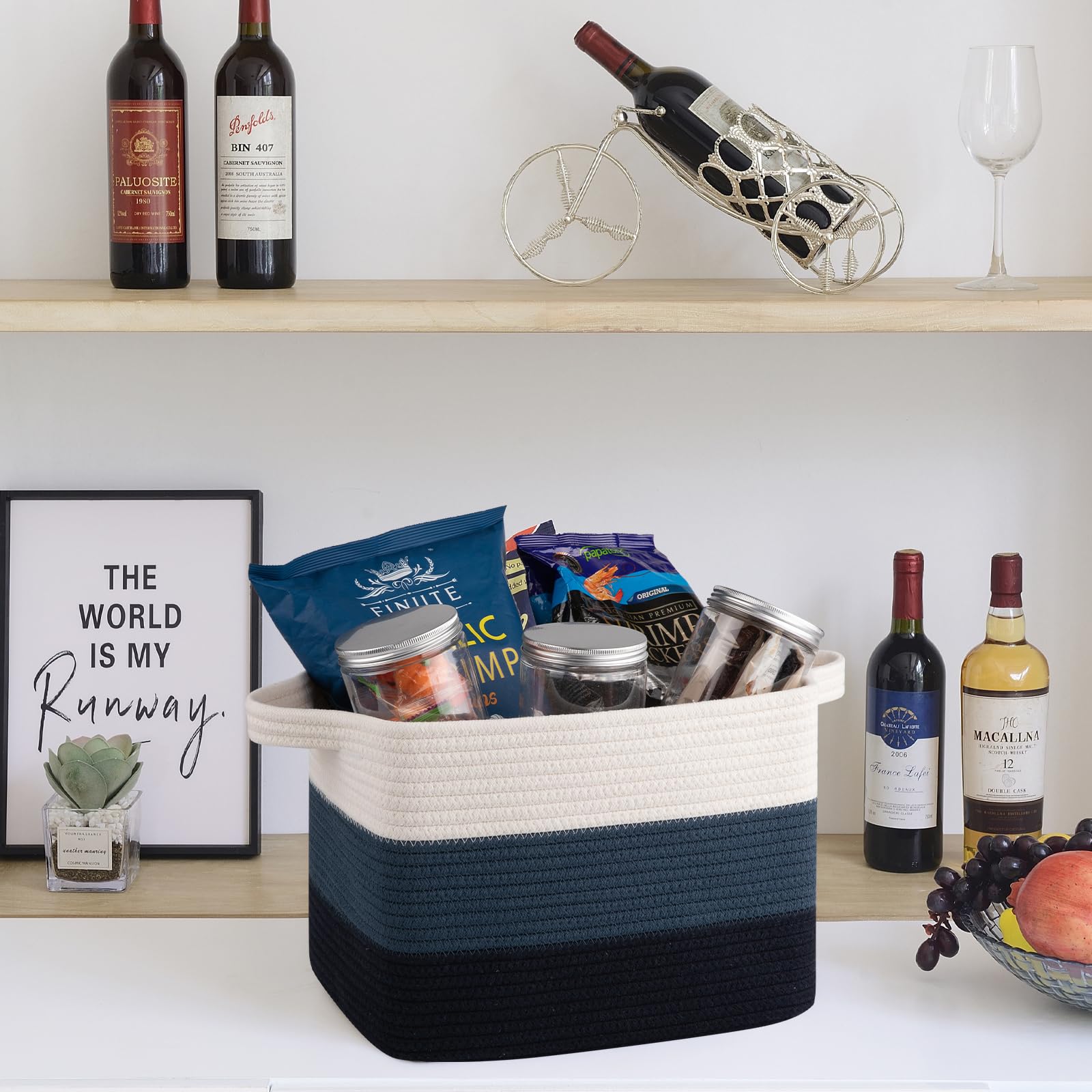 Multifunctional Storage Basket:13"x9.85"x8.7"inch, large capacity, convenient to store more daily necessities.Our baskets are handmade with flexible material, which may result in slight size variations. It is a perfect storage basket for living room, bedroom, bathroom, baby room, utility room, playroom, classroom. Store household items (towels, toiletries, etc.),Office Supplies, fruit, snacks , books, baby diapers or toys. Use for dog toy storage organization to keep your living space tidy
