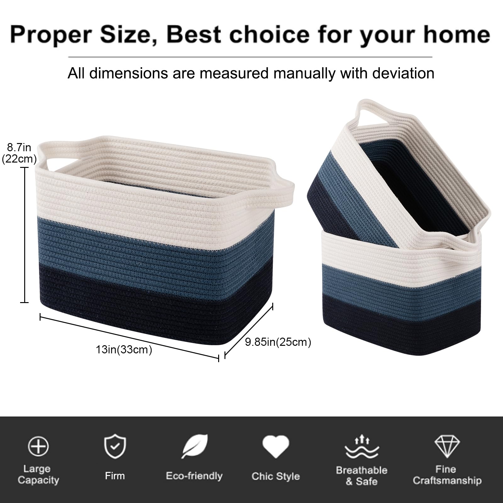 High Quality Cotton Rope Woven: Woven cotton thread is very soft and don't damage your floors and furniture. Seamless design, not easy to tear,More firm than rattan and plastic materials. Our storage basket has no harsh chemiacls added, and the cotton rope basket is safe for kids, elders and pets. Firm enough and stylish enough to go anywhere in the home