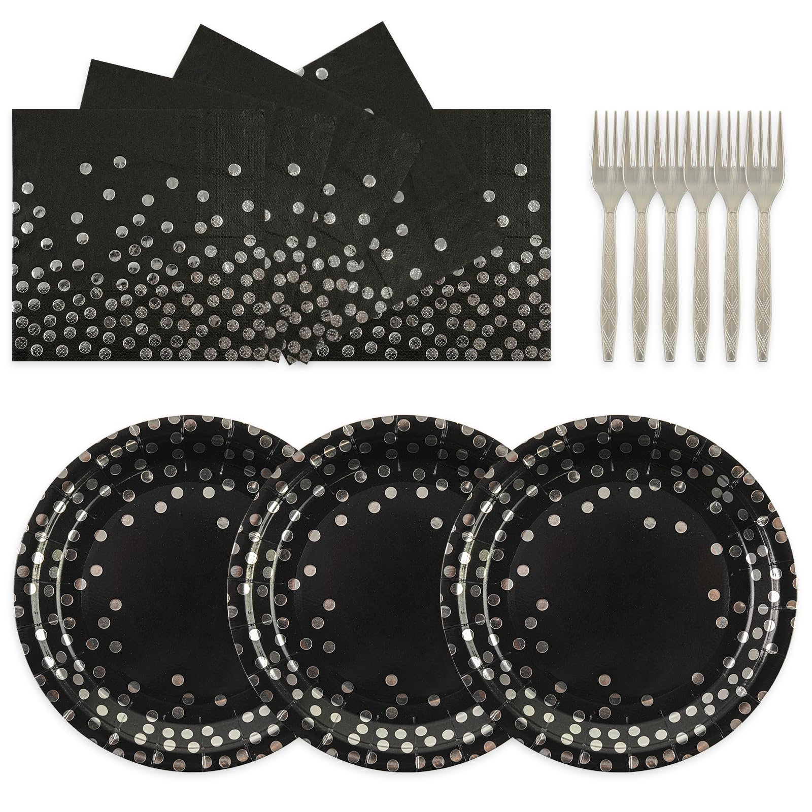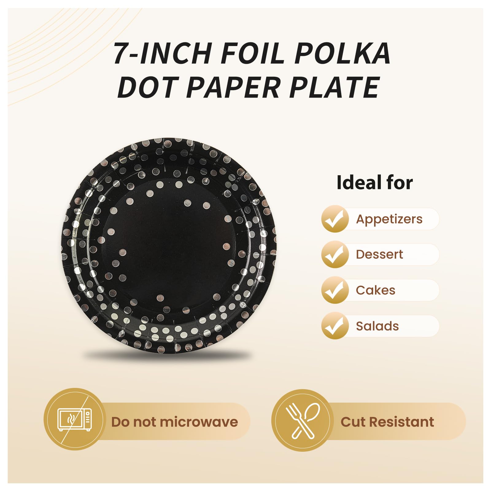 【PREMIUM GOLD FOIL DOT DESIGN】: Our black and sliver dot party paper plates and napkins are decorated with sliver polka dots. Very stylish and beautiful with gorgeous and charming colors. Your guests will love this elegant and premium design.
