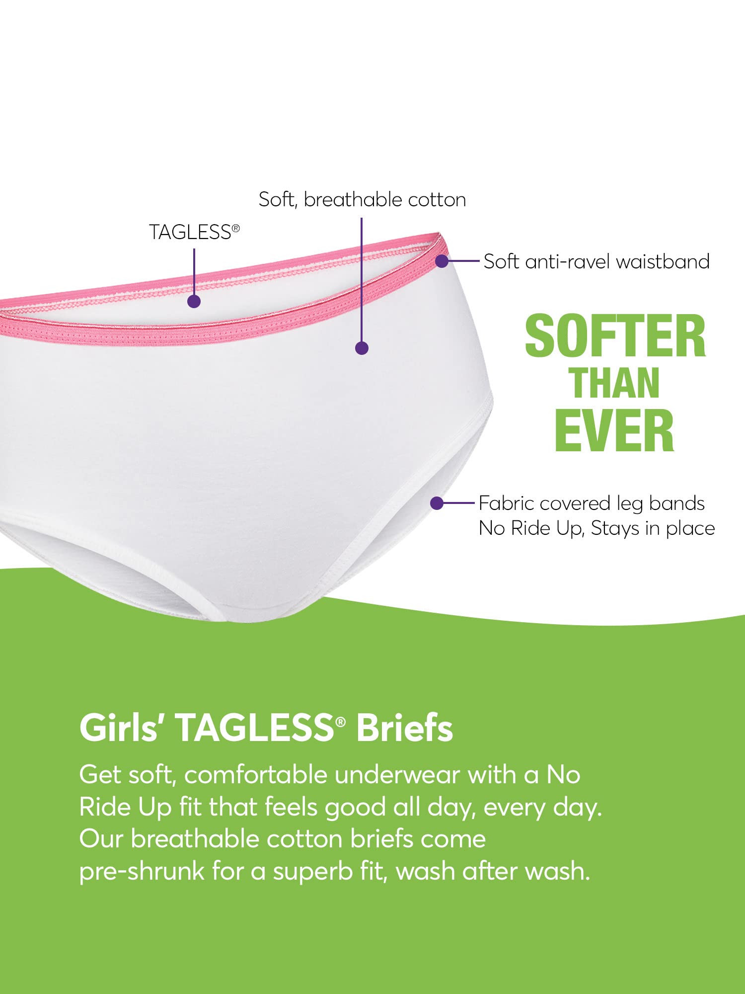 TAG FREE - A Tagless itch-free design adds even more comfort to these girls’ cotton underwear.