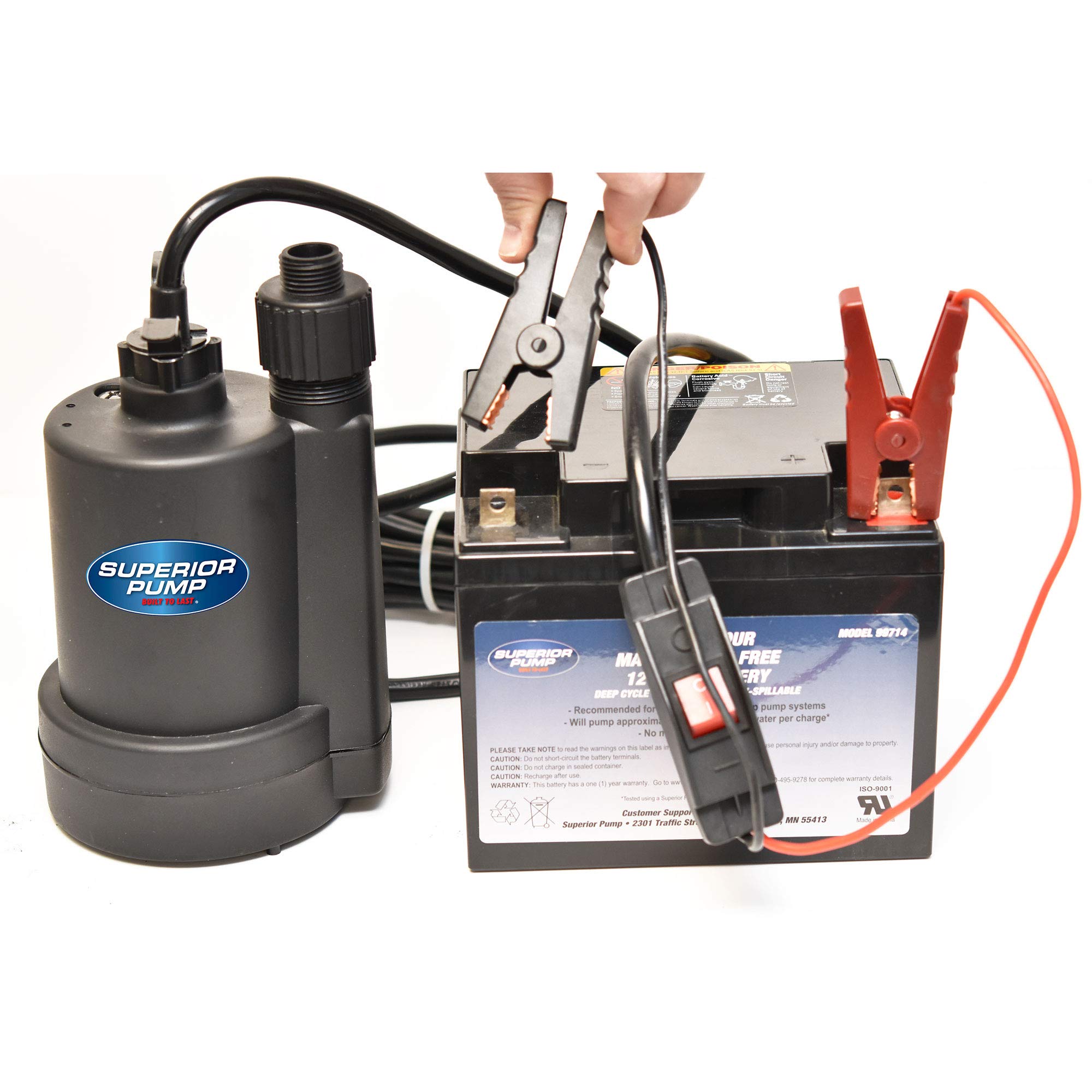 Superior Pump builds pumps that are truly built to last and are 100 percent factory tested. Superior Pump uses quality components including solid copper motor windings, heavy duty stainless steel jacketed shaft seals, double o-ring seals on motor plate, and electronically controlled split capacitors. Superior Pump model 91012, 12 Volt submersible utility pump, will move water up to 1380 gallons per hour. Pump water virtually anywhere using a 12 Volt battery. This versatile pump can be used for camping, hunting, fishing, as a backup boat bilge pump, cabins, basements, or other general water transfer applications. This pump is backed by a 1 year warranty battery not included. 12 volt battery not included.