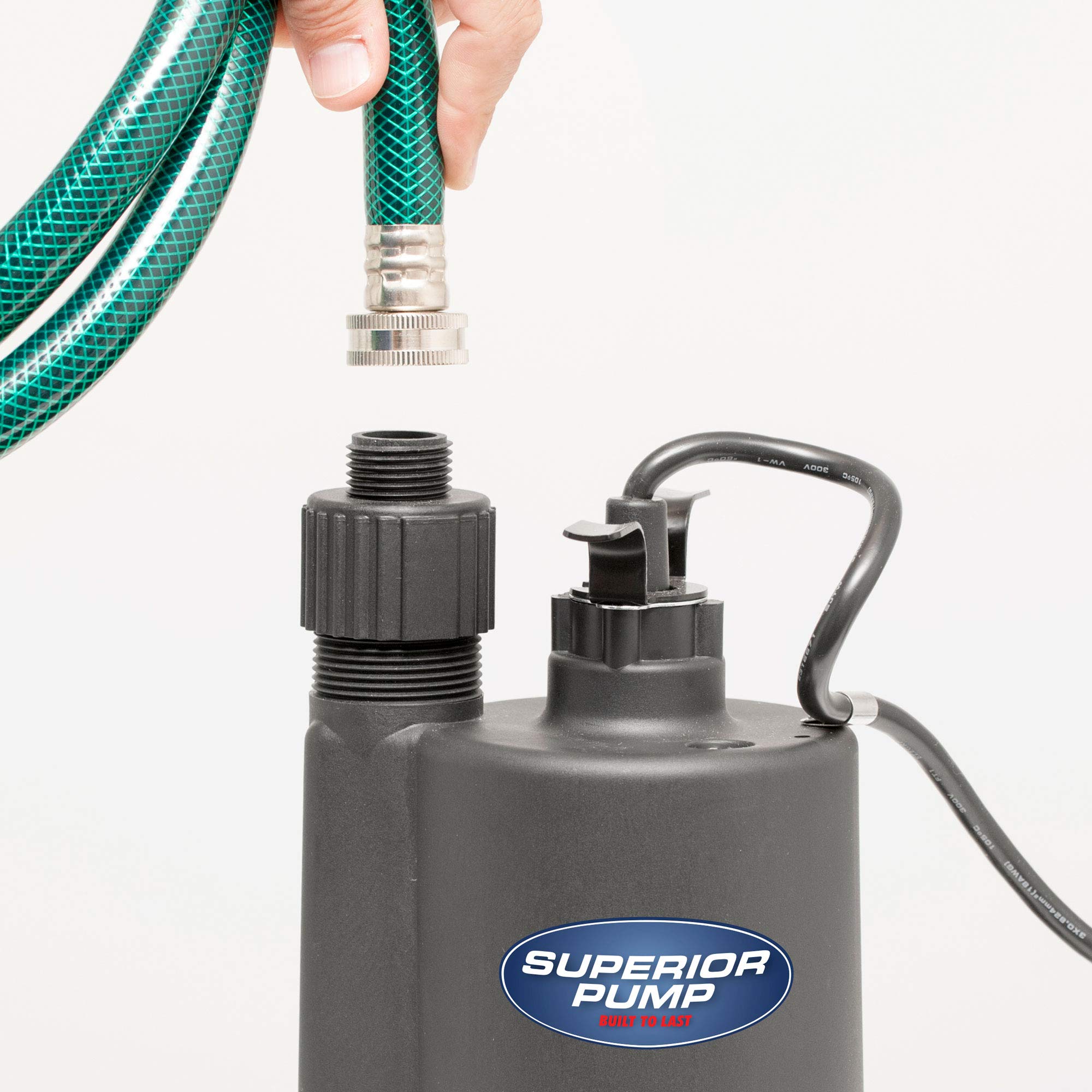 1-1/4 inch discharge for high capacity pumping includes 3/4 inch garden hose adapter