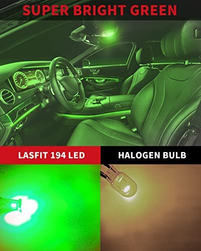 【Wide Application】194 Led bulb green is the upgraded replacement for interior door light, dome light, parking light, side marker light, trunk cargo light, courtesy light, map light, glove box light, etc. NOTE: NOTE: These T10/194 LED bulbs may not fit every single position in a vehicle, please check the user manual or original bulb size before purchasing.