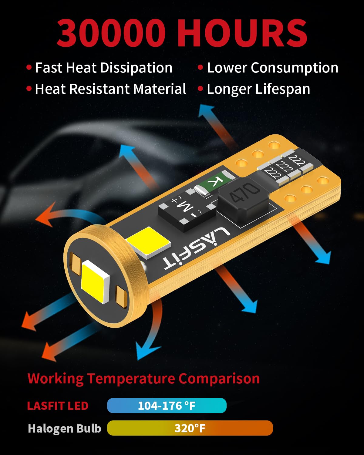 Safe Driving & Long Lifespan】Loaded with mini fuses to prevent the led bulb from burning out by the excessive instant current to ensure safer installation. Efficient heat dissipation for low energy consumption to ensures the 168 bulb work 30,000+ hours. These LED bulbs have 1-year warranty, if they have any problem upon installing or after use, please contact us directly to get replacement.
