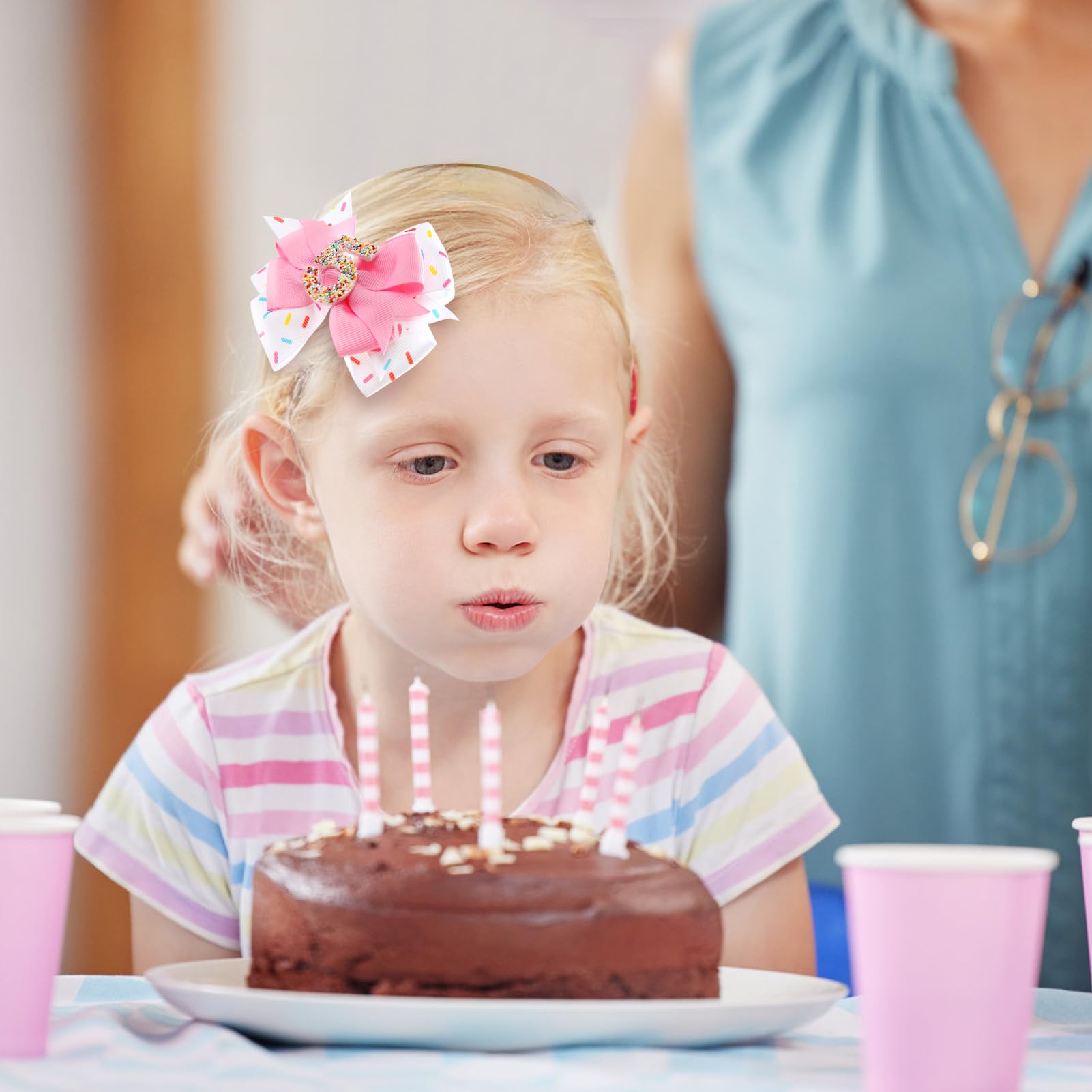 Material: Bow is made of quality ribbon, 1 bow is attached to pink nylon and 2-6 bow is attached to alligator clip. Colored glitter on the Number does not flake off.
