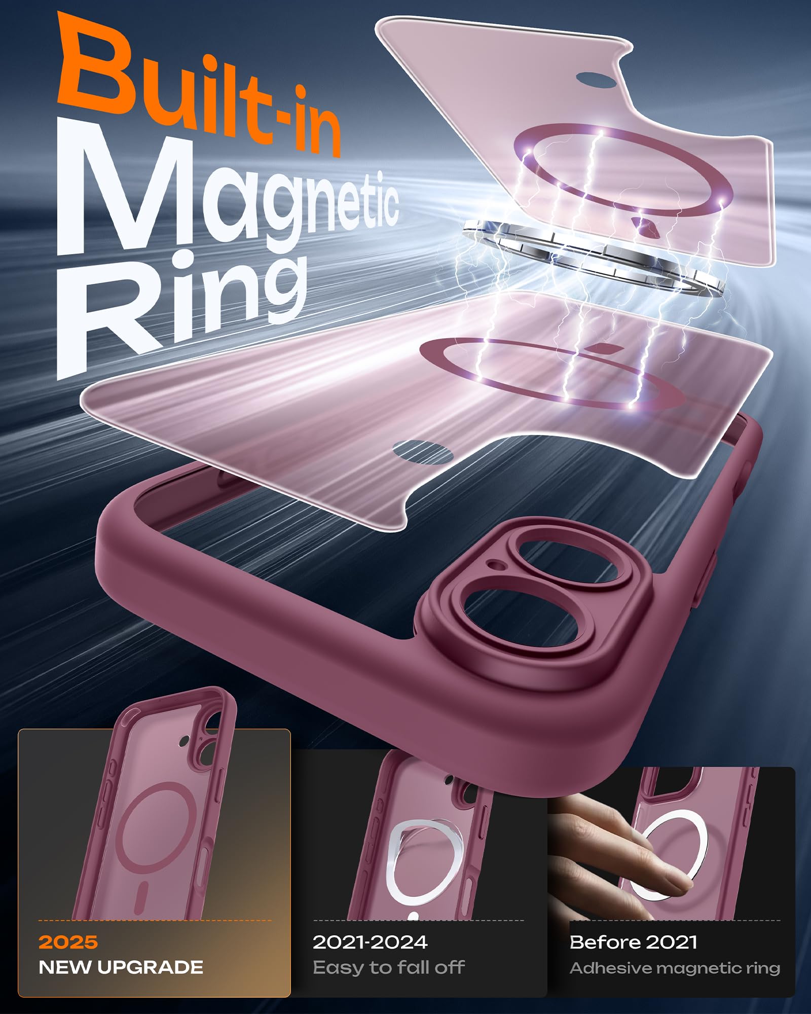 Embedded Magnetic Ring:Upgraded for iPhone 17 Magnetic Case. Built-in magnetic ring never falls off. 18N ultra-strong power, perfect for all your Mag accessories. It holds up well on your Mag car mount, even over strong bumps